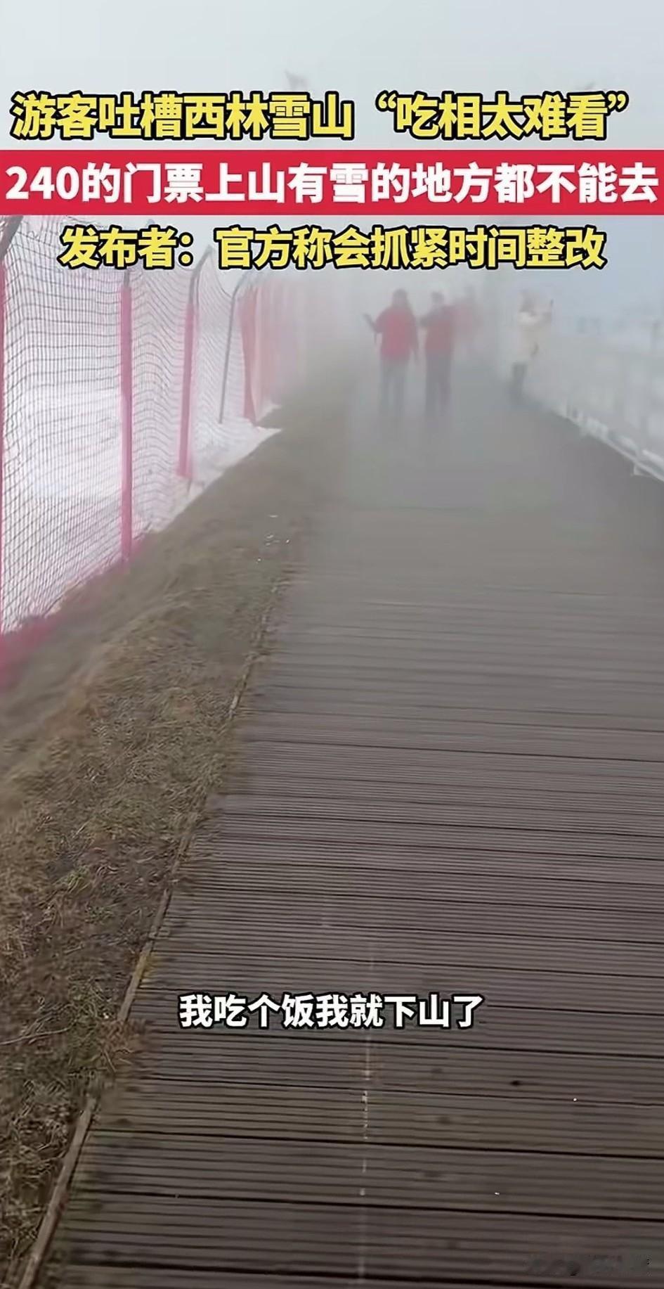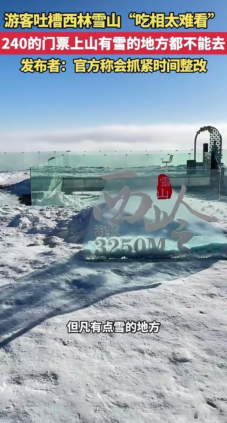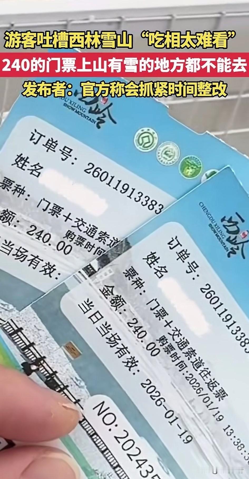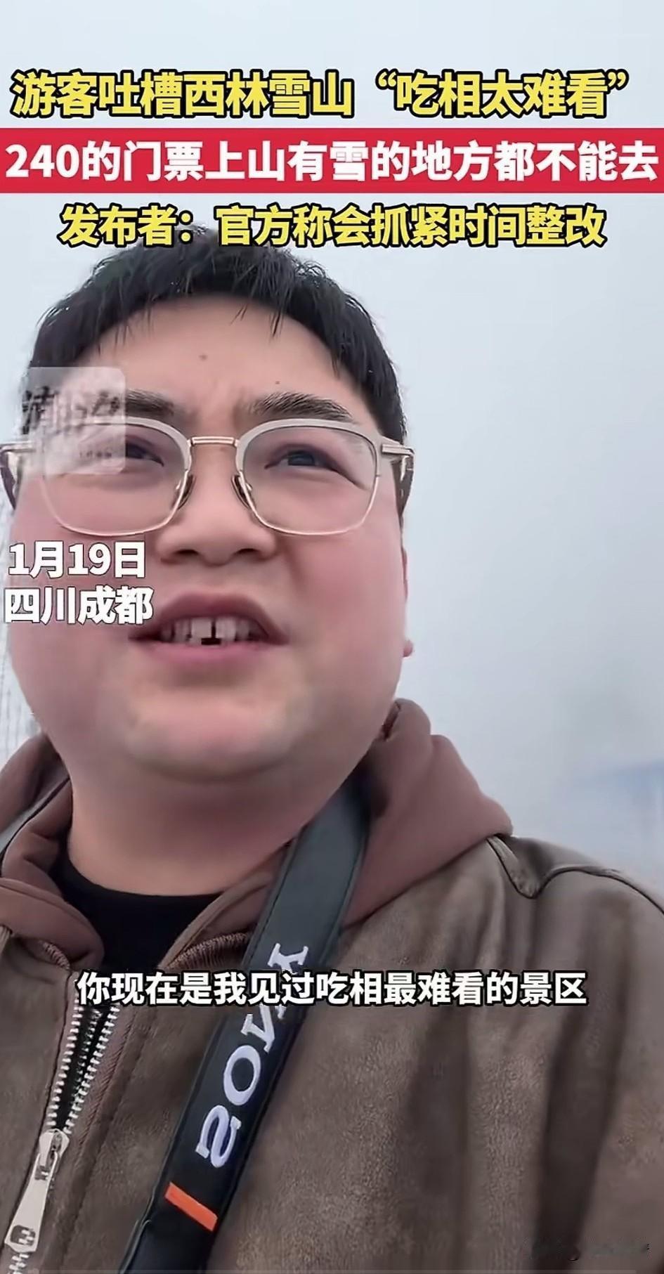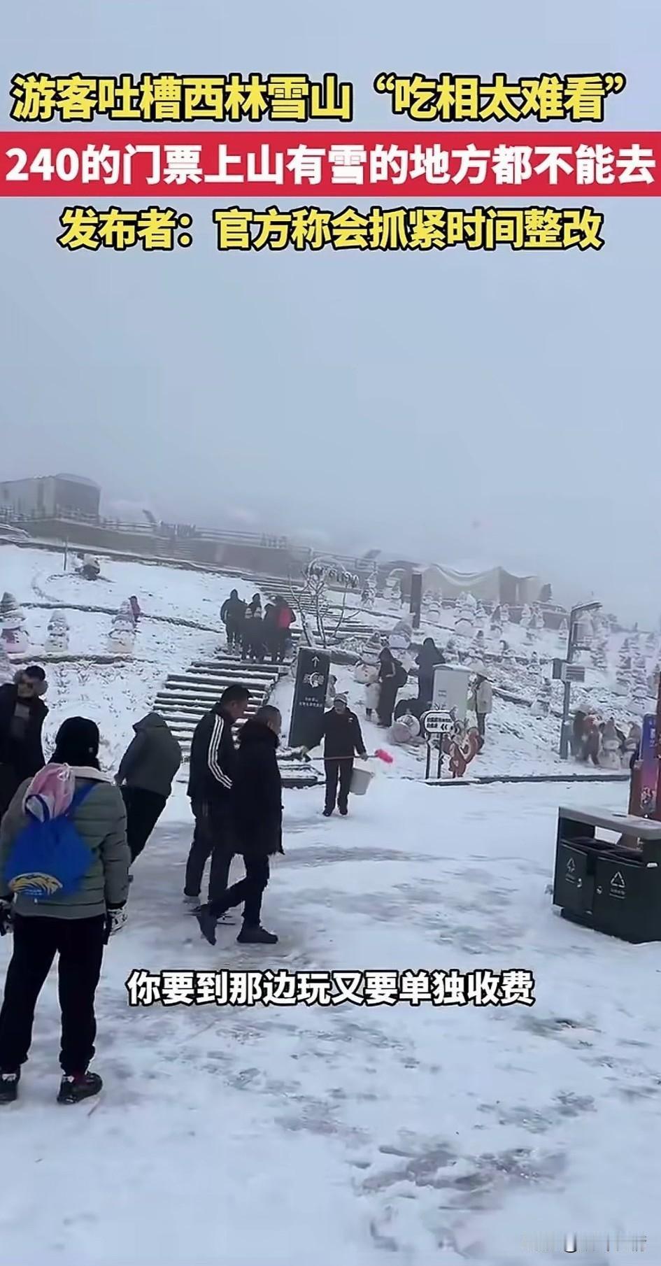 一觉醒来,成都文旅天塌了,游客吐槽西岭雪山吃相太难看了,花240的门票,山上有雪的地方都不能去,这直接引爆舆论! 1月19号在四川成都西岭雪山,一游客花240元进入了景区,本来高高兴兴的去玩! 结果进入景区后他直接傻眼,景区内所有能看得见雪的地方全部被围了起来,以前他也来过这个景区! 没有这么多网格,现在不知道为什么多了这么多网格,问了一下景区的工作人员! 这才知道想玩必须得单独掏钱,也就是说门票只是进来的钱,里面所有的项目都要单独收费! 你玩个雪要单独收88元,才会放你进入网格里面,当你玩完之后想到对面的网格,那对不起了,再掏88元! 这可把小哥气的不轻,本来这个地方因为独特的自然景观,作为非物质文化遗产,每年吸引大量的人来看雪! 结果现在倒好,景区为了挣钱,还真是一点脸都不要了!居然这样搞收费。还真是让人无力吐槽! 资本论说的一点都没错,资本为了利益最大化,真的可以做出来常人难以理解的事! 游客吐槽景区的视频在网上火了,当地文旅迅速发文,一天会整改!难道之前没有看到了? 中国最神奇的地方就是,所有的自然景观都给你围起来收费!你还不能说它不好! 明眼人都知道,这就是为了平息舆论的怒火,热度一过,舞照天酒照喝!一切又恢复原来的样子! 大家以后还会去西岭雪山旅行吗?不妨聊一聊! 每人推荐一个旅行目的地 西岭雪景 西岭雪徒步