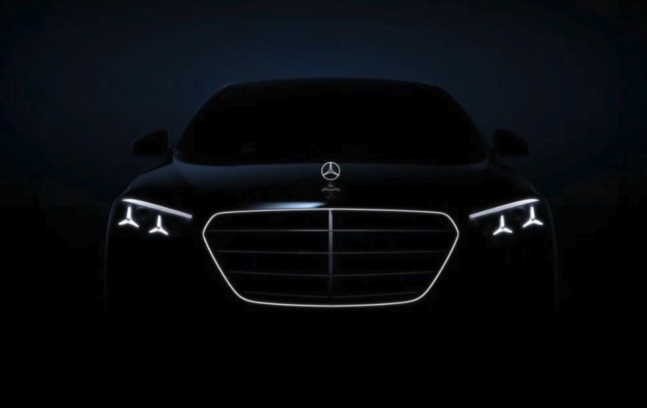 立标也发光!新款奔驰S级预告图发布。新车定档1月29日全球首发,外媒报道该版本
