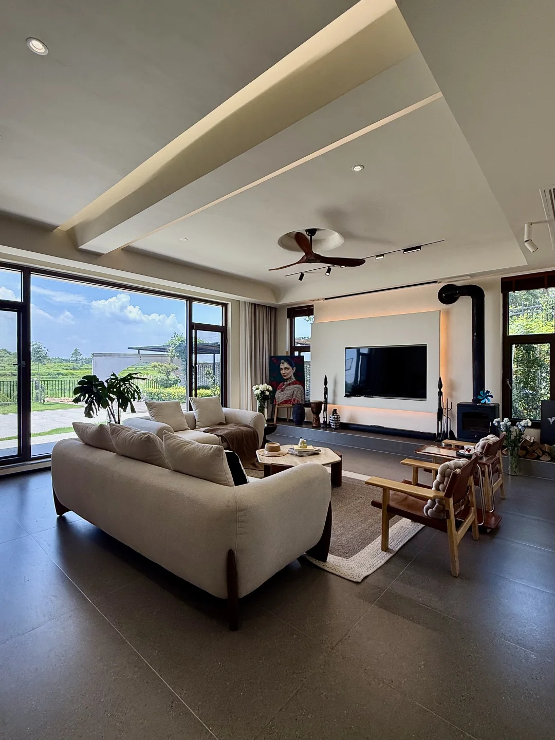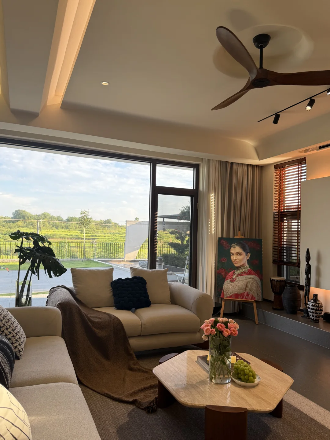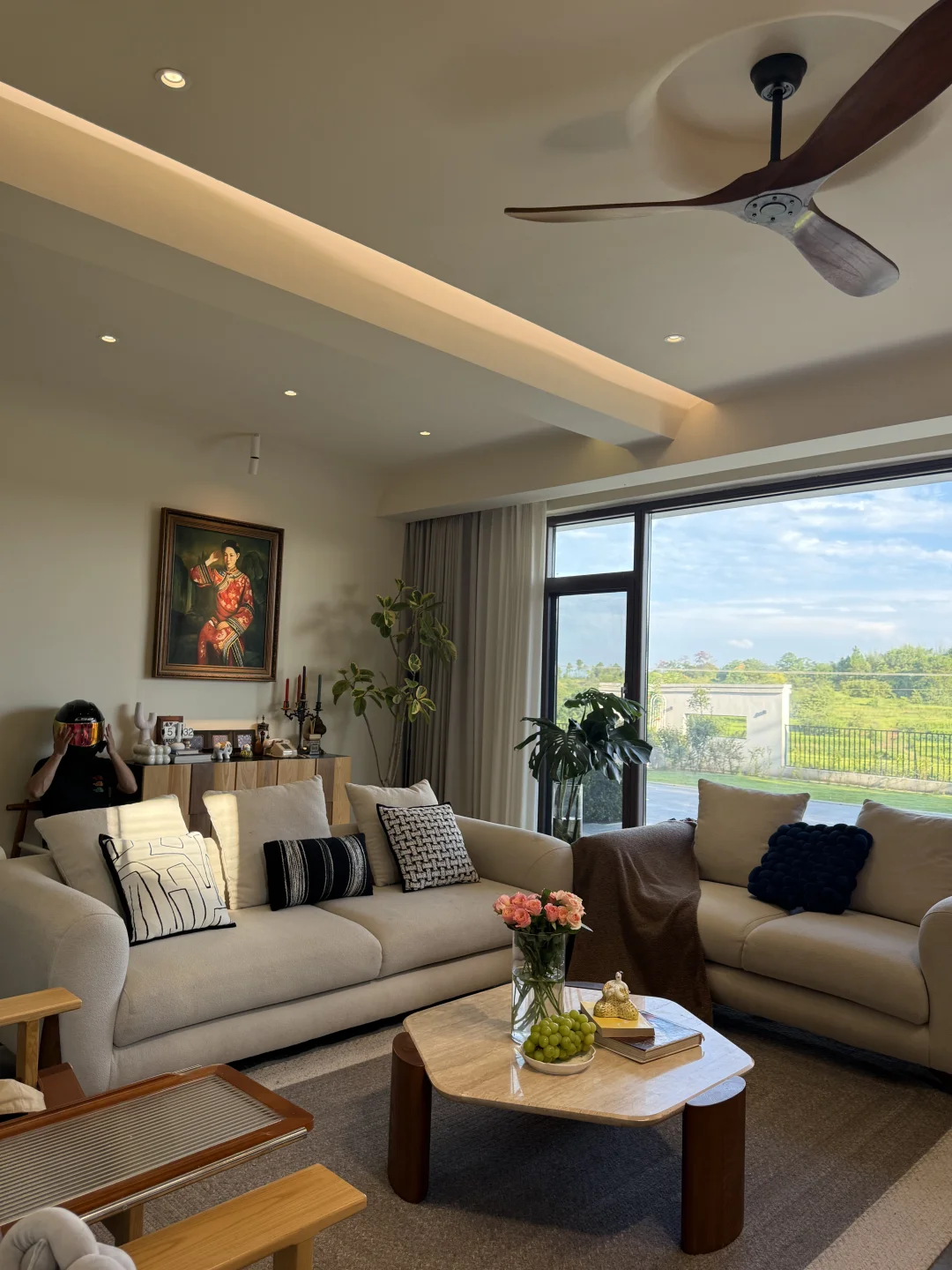 四年前建了一栋420平米的自建房 简约的外观和现代的装修 户型打破了常规农村自建房的布局 每一层根据我们的需求布局 一楼是生活区域,前厅、餐厅、客厅、娱乐室加一老人房 二楼是休息区域,会客厅、主卧加三个次卧 三楼只做了半层坡屋顶设计,坡屋顶设计成茶室和影音室 每一间房都有自己的功能,不浪费每一个空间 300平米院子一部分做了硬化设计成庭院 一部分保留了原有的做成了花园 回村住的第四年 看着家里和花园一点点的被填满 满满都是我们对生活的热爱 每次发pyq的家 朋友们都说我们家一点都不像农村 回村住的这几年 真的觉得乡下住着比在城市里更适合自己