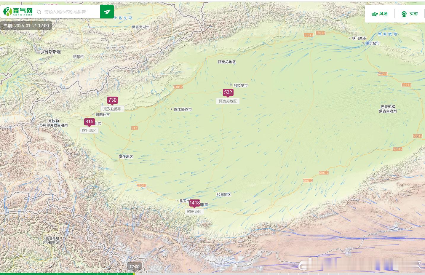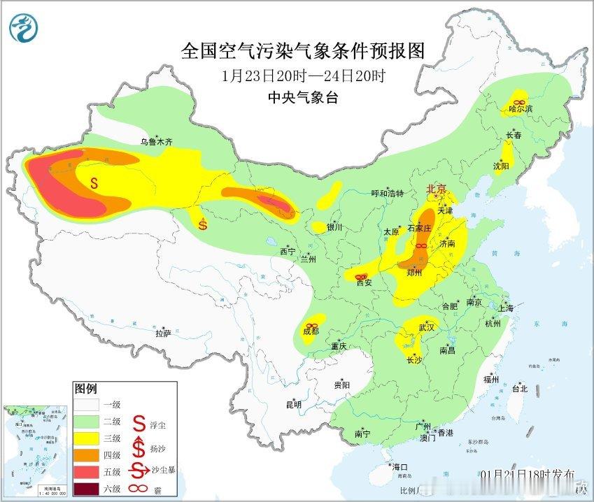 【雾 霾 沙尘】今天17时在塔里木盆地的沙尘影响还在持续,和田、喀什、克州出现爆表,PM10大幅超标。新疆天山北麓,有霾堆积,石河子出现重污染,首要污染物为PM2.5。另外在山西晋城,河南焦作、洛阳,出现了轻度污染。未来塔里木盆地的沙尘会持续,24日还可能增多。华北南部和黄淮的霾也会增多,对应处于低空反气旋后部,这个形势不利于污染物扩散。叠加黄淮等地之前还有积雪,导致地面升温慢于低空升温,可能出现近地面逆温,不利污染物扩散,容易出现霾。另外,降水过后湿度大,21日夜间-22日上午,四川盆地南部、贵州西部、云南南部等地的部分地区有大雾天气,局地能见度将不足200米。