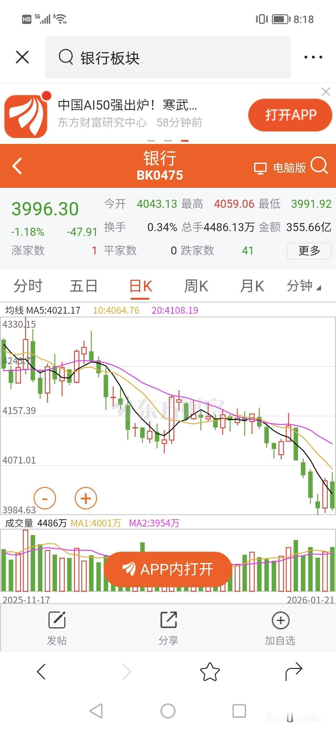 今天跌幅最大竟然是银行。?1.18%下跌, 看来银行抛压还在, 估计还要调整几天。!!! 但是,目前最危险的板块绝对不是银行。买入银行的,不要后悔。银行 银行股价值