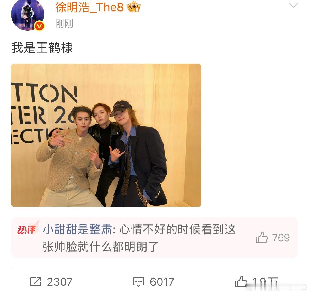 哥三玩起来了王嘉尔王鹤棣徐明浩微博互动王嘉尔王鹤棣徐明浩微博合照