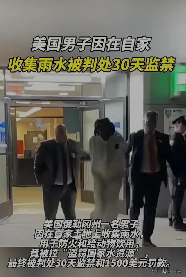 美国男子在自己家里收集雨水,被判处30天监禁。 你信不信? 这居然是真的。 根据大众网报道,在美国俄勒冈州一位男子在自己家土地上收集雨水,打算用来给自己家的动物喝。或者用来防火。 本来这在我们这儿可是再正常不过,但在美国不知道为什么,这名男子被控“盗窃国家水资源”,最后他被判处30天监禁,同时还罚款1500美元。 那么他的这一行为为什么会被控呢? 据了解,这名男子叫哈林顿,他在自家170英亩土地上修建三座大型蓄水池(总容量达1300万加仑,约4.9万立方米,相当于20个标准奥运泳池),用于收集雨水和季节性融雪径流。 当地水务部门发现哈林顿的蓄水设施后,认为他的行为截留了本应流入当地河流系统的水源,影响了下游用水权人的利益,以9项非法蓄水相关罪名对其提起诉讼,指控他“未经许可使用州水资源”、“非法侵占公共水资源”。 哈林顿不服判决,多次上诉,辩称“雨水落在我的土地上,我有权使用,且未用于商业目的,只是灌溉自家土地”。 据有网友反映,这事儿在美国可能真的会触犯法律。