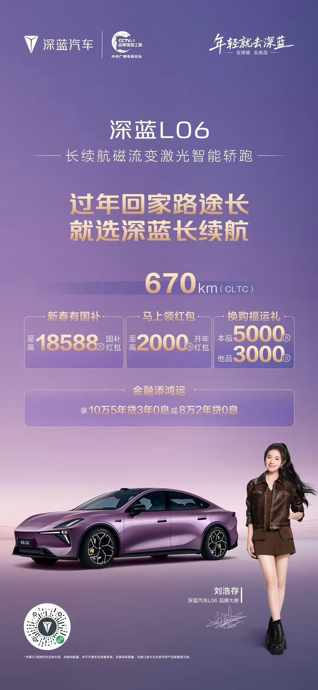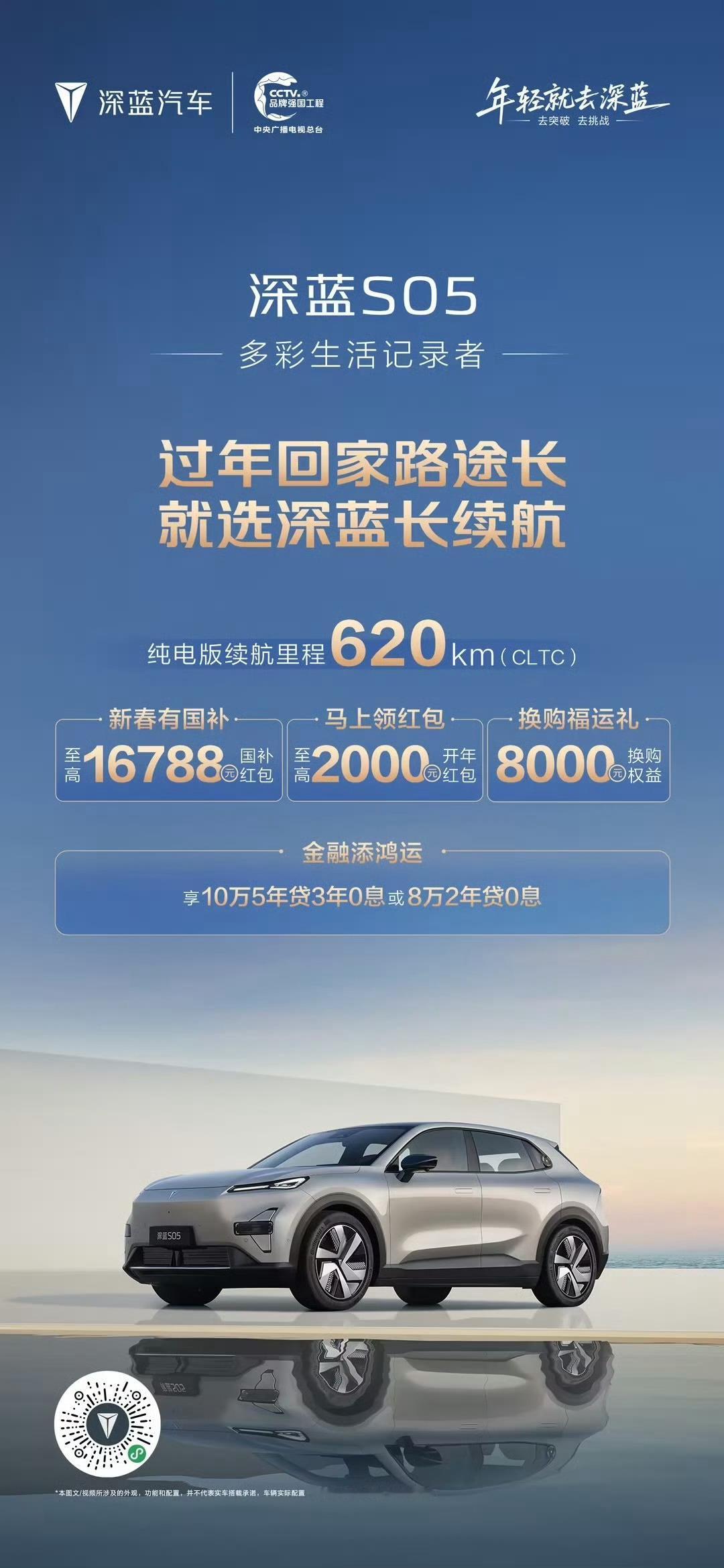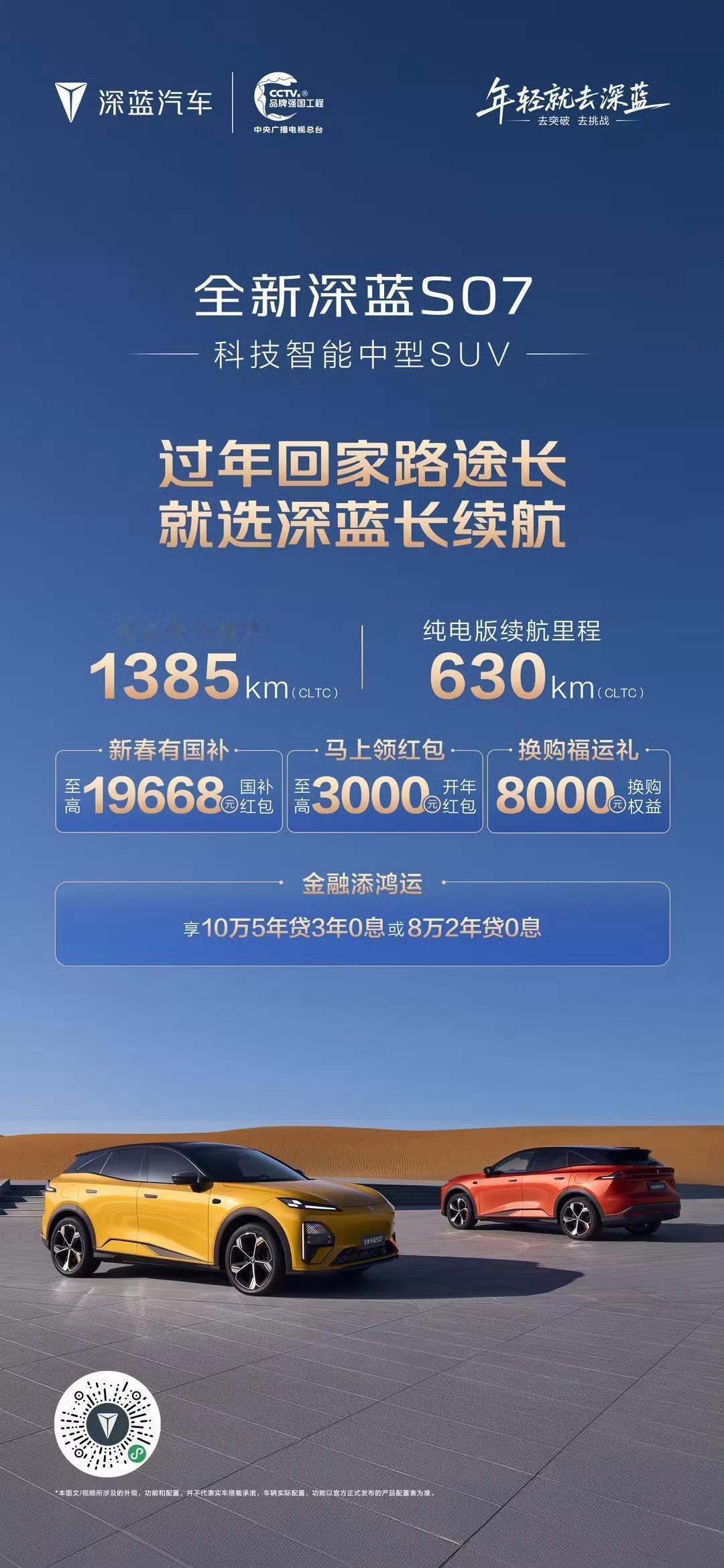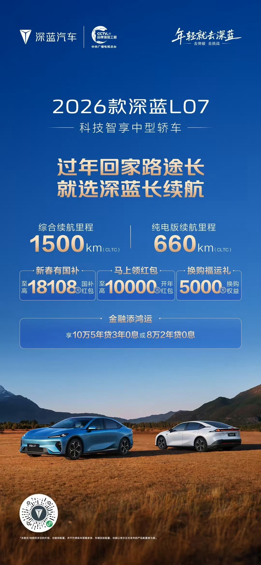 深蓝家族长续航直播刚刚结束,跟大伙简单聊聊~先回顾一下深蓝的2025年,全年全球卖了33.3万台,涨了36.6%,总交付也跨过了70万辆大关。车型方面,深蓝S07全球累计销量破30万辆,深蓝S05 2025年全球销量13.8万辆,单月突破2万辆。在辅助驾驶方面,深蓝拿下了中国首块L3级自动驾驶专用正式号牌,开启中国L3级自动驾驶时代,并且完成了C轮融资61亿元。这次直播还提到了深蓝的S05、S07、L06、L07长续航版在春节前还有限时补贴(购置税、换购、国补)。大伙对哪款有想法🤔过年回家路途长就选深蓝长续航