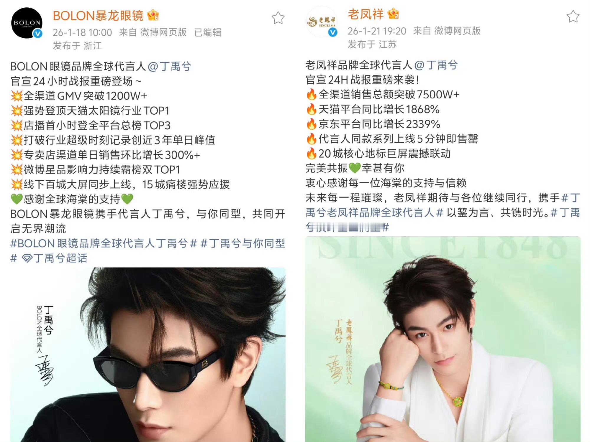 丁禹兮的新代言暴龙眼镜和老凤祥不愧是龙凤呈祥cp,战报都用cp模式 正主还领磕哈