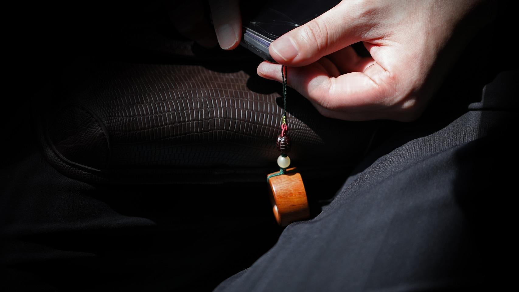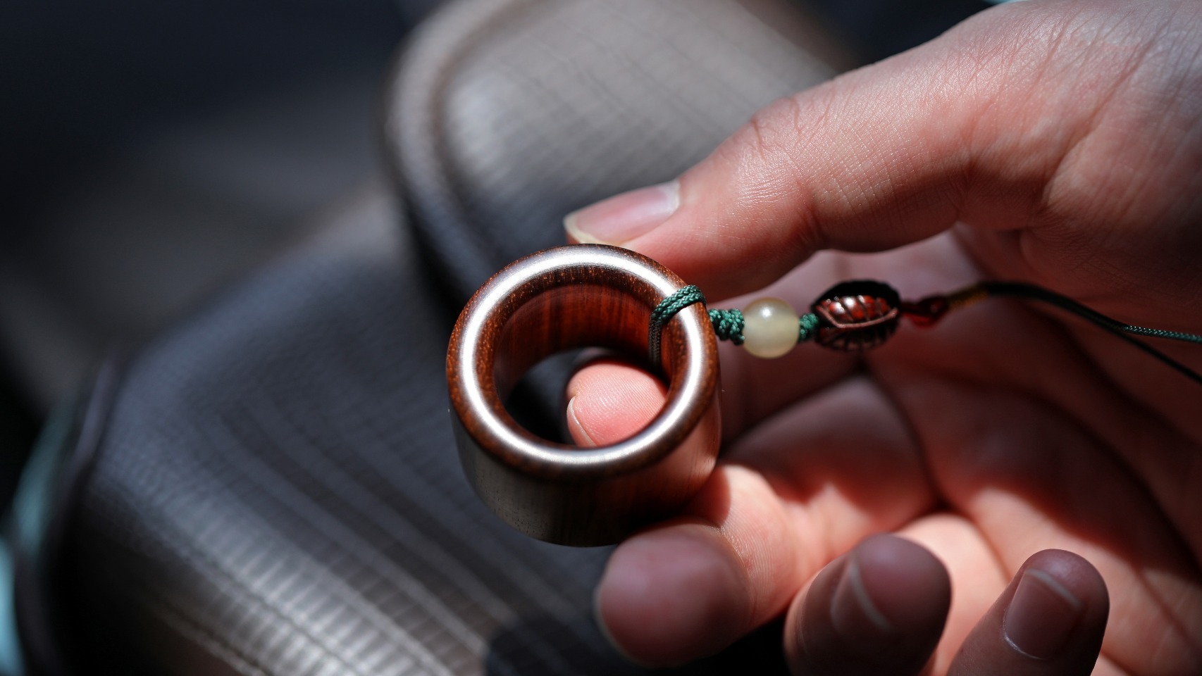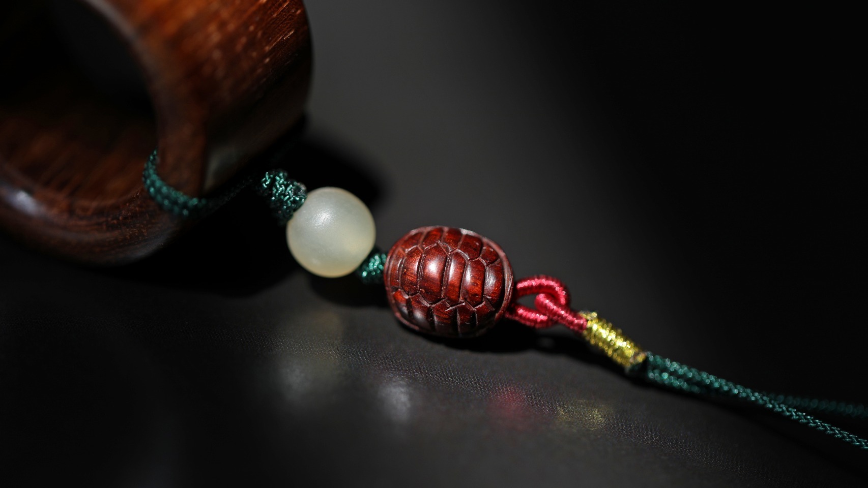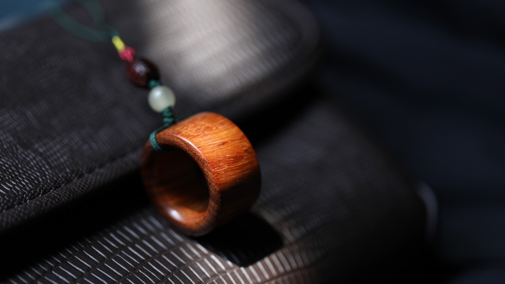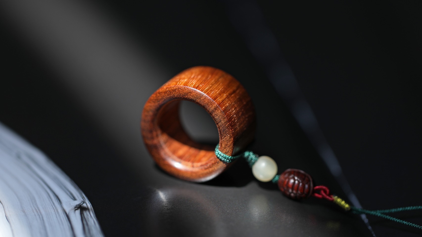 黄花梨·扳指 挂件精选黄花梨油梨老料,配以紫檀富甲、琉璃点缀,精致绳结,富贵内敛。直径3.3cm 内径2cm 厚0.6cm 重10.6g 黄花梨·扳指 挂件