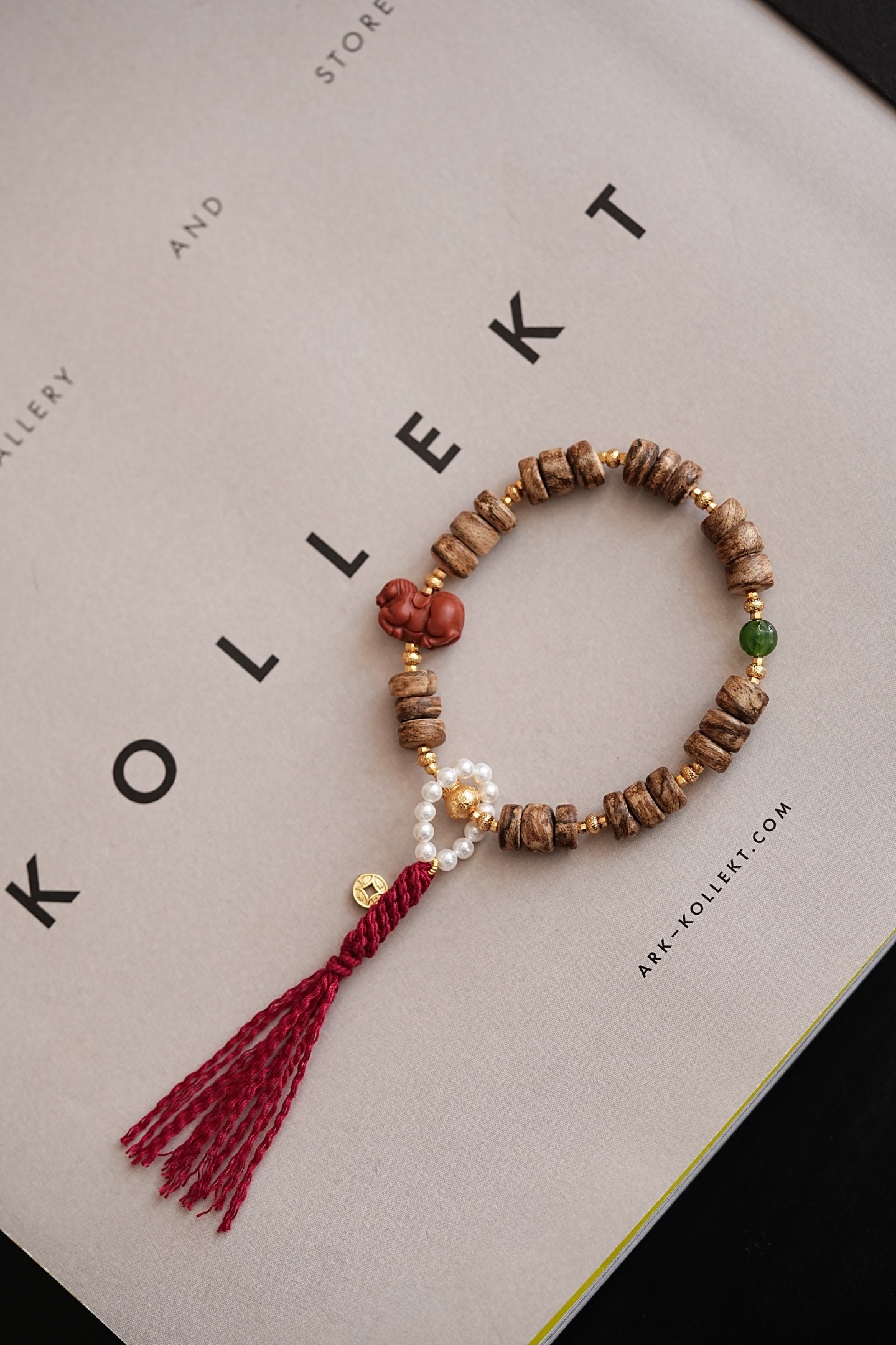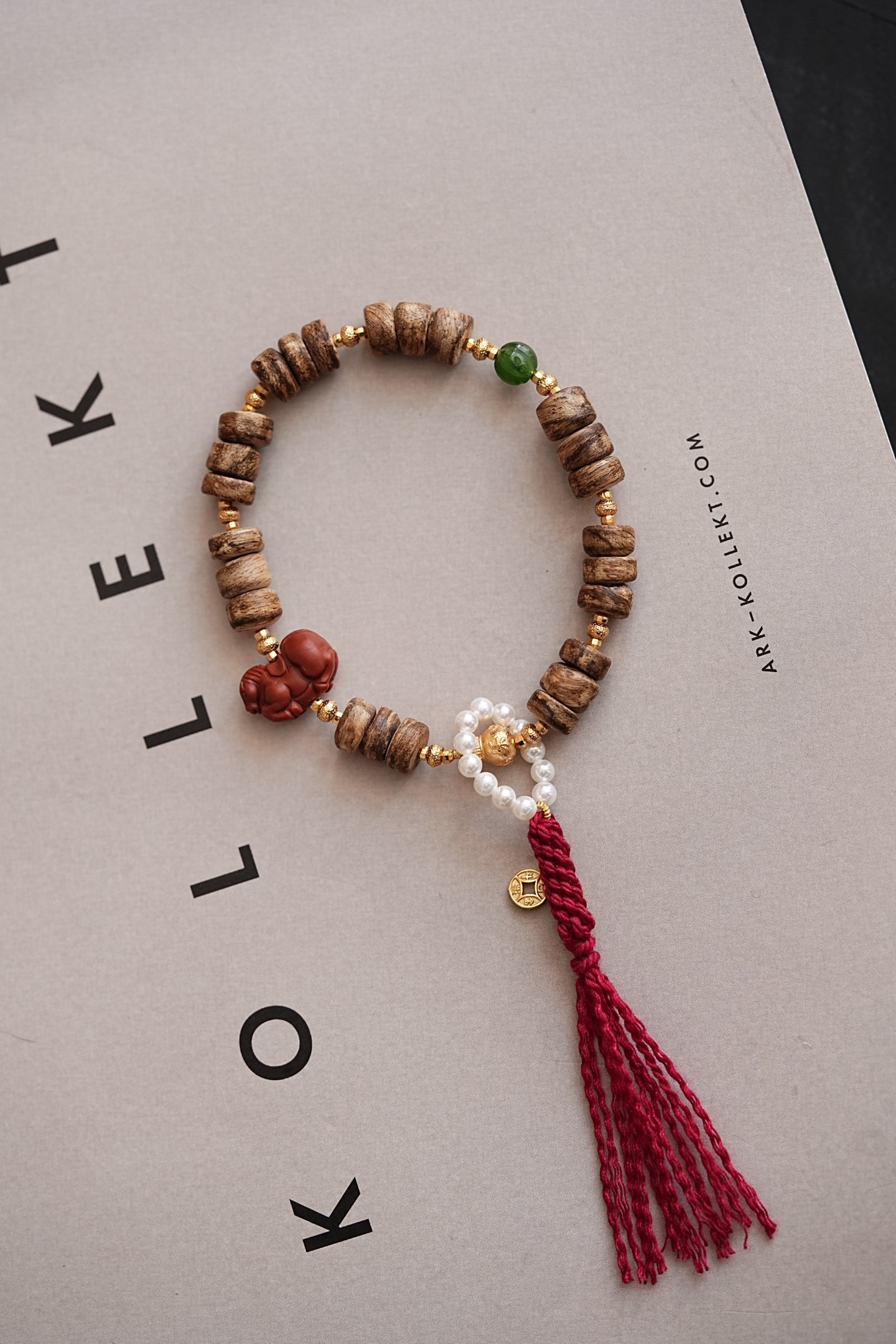 达拉干算盘珠老料 | 原创「马上有钱」花珠油脂斑驳,分布如山水泼墨,甜韵馥郁,素雅大方,腕间佩戴,足添中式韵味。4*8mm 6.6g