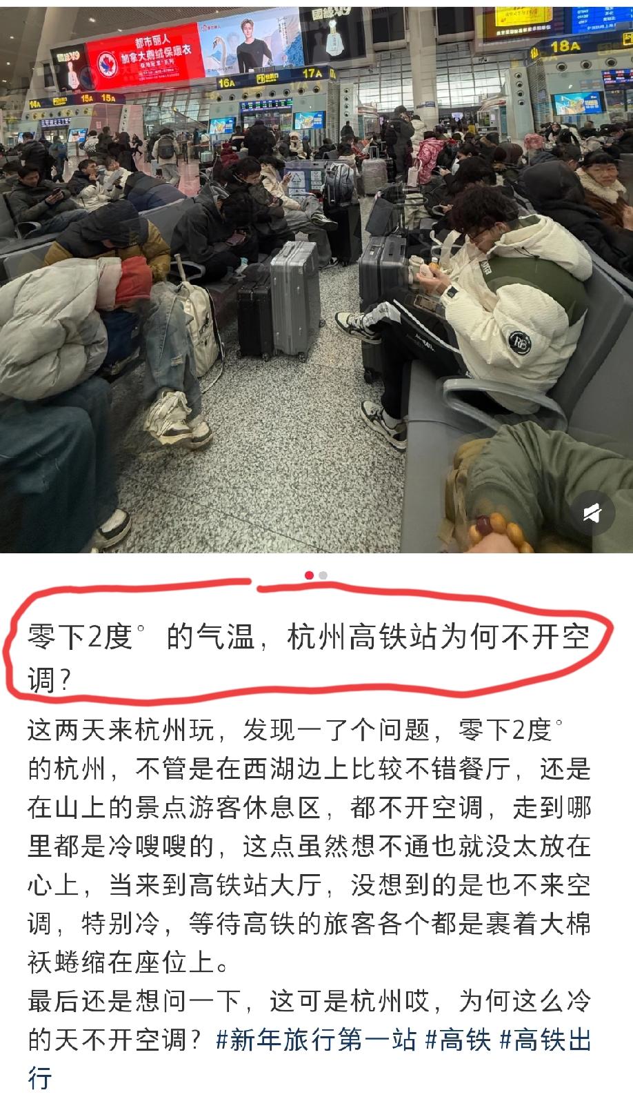 上海网友发文吐槽:杭州这么冷的天,高铁站为什么不开空调。 这位网友还同样吐槽了杭州西湖边的餐厅和景区,也是同样的不开空调。 咱也不知道上海的这些高铁站这几天有没有开空调。但如果是久居上海的,就应该了解上海、苏州、杭州这一片的老百姓冬天就是这么过来的啊,这里的老百姓冬天普遍扛冻。 看了一下网友的资料,我才恍然大悟。她是一位美女老板,是房地产咨询公司的创始人,可能生活的档次就比我们普通老百姓要高很多吧,这样我就可以理解了!