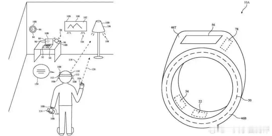苹果首款AI穿戴设备曝光苹果戒指要来了?苹果正加速研发的又一款新型可穿戴设备曝光了,这次是Apple Ring,俗称:苹果智能戒指。据美国商标和专利局的公示信息,苹果最近获得了一项智能戒指的新专利。专利显示,该设备不仅可以追踪佩戴者的健康数据,还能与苹果生态系统中的其他产品进行联动。据专利描述,Apple Ring支持手势、触摸、力输入、语音、指向和注视等多种输入方式,可以通过身体部位的特定动作进行交互。同时能实现与苹果其他设备包括iPhone、iPad、Mac、Apple Vision Pro、Apple TV等的无缝连接。在智能家居方面,Apple Ring拥有较强的便捷性。比如可以用来充当Apple TV的遥控器、通过简单的手势和语音指令控制灯光、为Apple Vision Pro提供更加精准的手势操作等等。Apple Ring还能与NFC设备交互,模拟门禁卡、公交卡等,为用户提供比iPhone或Apple Watch更为便捷的使用体验。健康监测也是Apple Ring的一大亮点。它能够实时监测用户的心率、步数、睡眠规律等健康数据,并且支持将这些数据导出到iPhone上。虽然在健康监测功能上,Apple Ring听起来好像和其他智能穿戴设备并无太大差异,但智能戒指的产品形态相对于现有的智能手表来说会更加轻便,不仅佩戴更贴合,生物信息采样效率也更高。据悉,苹果还可能与医疗保健、智能交通等领域的科技公司合作,共同开发更多应用场景,这将为Apple Ring赋予更多实用价值。其实在智能戒指领域,苹果并不算先驱者,隔壁三星早就发布了其首款智能戒指Galaxy Ring。据爆料称,该戒指的市场反馈相当不错,其销量已远远超出了预期水平。智能戒指或许会成为可穿戴领域的下一个热门焦点,苹果Apple Ring的推出也只是时间上的问题,让我们拭目以待吧。