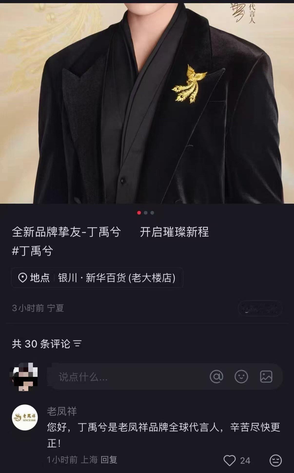 老凤祥官号到处溜达看到有人给自家代言人降title,立马评论区维权!丁禹兮就这样