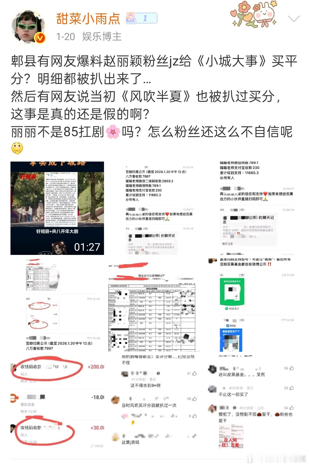 前几天吃瓜说赵丽颖粉丝jz给《小城大事》买豆瓣评分…这不等于锤了吗?全是新疆ip的评论,一系列ai文案一秒发出