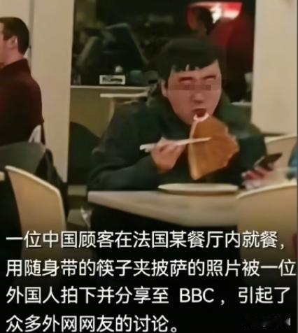 一位中国顾客在法国某餐厅内就餐,用随身带的筷子夹披萨的照片,被一位外国人拍下并分享至 BBC,引起了众多外网网友的讨论。 上海,一家装修挺讲究的法国餐厅,白桌布、红酒杯、刀叉摆得整整齐齐。 中午用餐高峰,一位中国中年男顾客坐在靠窗的位置,点了一份披萨。服务员把披萨端上来后,他看了一眼桌上的刀叉,明显有点不顺手。 人到中年,说实话,也没那么多讲究了。 这位顾客想了想,从随身的包里掏出一双筷子——那种普通得不能再普通的一次性筷子。然后,在众目睽睽之下,他用筷子夹起披萨,吃得那叫一个自然、顺溜。 披萨拉丝,筷子一夹,稳稳当当。 旁边几桌有人偷偷看,有人憋笑,也有人觉得新鲜。可这位大哥完全不在意,低头吃得很香。 没想到,这一幕被店里一位外国顾客拍了下来。 照片里,中国大叔一手筷子、一块披萨,背景是法式餐厅的环境,对比感直接拉满。随后,这张照片被上传到外网,还被 BBC 相关账号转发,一下子就炸了。 外网评论区,画风立马不一样了。 不少外国网友第一反应就是:“等等?披萨不是用手或者刀叉吃的吗?”“他为什么用筷子?这是开玩笑吗?” 还有人直接笑出声:“连披萨都不会吃,也太离谱了吧!” 更夸张的评论也来了: “这是不是文化问题?他们是不是从来不用刀叉?” “我第一次见有人这样吃披萨,感觉哪里不对,但又说不出来。” 甚至还有人调侃:“下次是不是要用筷子吃汉堡、牛排?” 一时间,外网评论区表情包横飞,嬉笑声不断。 而当这张图被搬回国内社交平台后,评论区彻底变了味。 中国网友一看,直接不乐意了。 有人第一条就写:“怎么了?披萨是你家祖传的?规定只能用手?”点赞瞬间上万。 还有网友霸气回应: “老祖宗留下的筷子,比刀叉好用一万倍,夹啥都稳。” “筷子能夹花生米,夹个披萨算啥难事?” 评论区很快变成了大型“筷子安利现场”。 有人晒照片:“我在意大利用筷子吃意面,服务员还给我点赞。” 有人说:“我用筷子吃沙拉,干净又卫生。” 还有人一本正经分析:“用手吃披萨,油多不卫生,用筷子反而更文明。” 当然,也少不了调侃型网友: “这位外国朋友可能不知道,中国人用筷子,能把瓜子仁都夹出来。” “别说披萨了,给我一双筷子,我能夹起整个世界。” 但也有比较理性的声音出来打圆场: “其实真没必要嘲笑,吃东西顺手最重要。” “文化差异而已,不至于上纲上线。” 随着讨论越来越热,话题直接冲上热搜。 有人开始反问外网网友:“你们用刀叉吃中餐,我们笑过你们吗?” 也有人说:“这不是什么不会吃,是不想委屈自己。” 更有意思的是,商家们也迅速嗅到了热度。 有披萨店在网上发帖:“欢迎用筷子吃披萨,筷子我们也能提供。” 还有餐厅干脆打出标语:“刀叉自由,筷子也自由。” BBC 后续的报道语气也缓和了不少,称这是一次“有趣的文化瞬间”,并提到在全球化背景下,不同国家的人用不同方式享受美食,其实并不奇怪。 到最后,连外国网友的态度也开始转变。 有人留言说:“想想也没什么不对,他吃得开心就好。” 还有人表示:“我有点想试试用筷子吃披萨,可能更方便。” 这场由“一双筷子”引发的网络热议,慢慢从嘲笑,变成了讨论,再变成了理解。 不少中国网友在总结时说了一句特别扎心的话: “吃饭这件事,舒服最大,形式最小。” 或许正如网友所说的那样:披萨是意大利的,餐厅是法国的,但筷子,是中国人的生活智慧。 不管在哪儿,只要能把日子过顺,把饭吃香,用什么工具,真的没那么重要。 这件事看着好笑,却也挺真实。 一双筷子夹起的,不只是披萨,还有中国人对生活的松弛感和自信感。