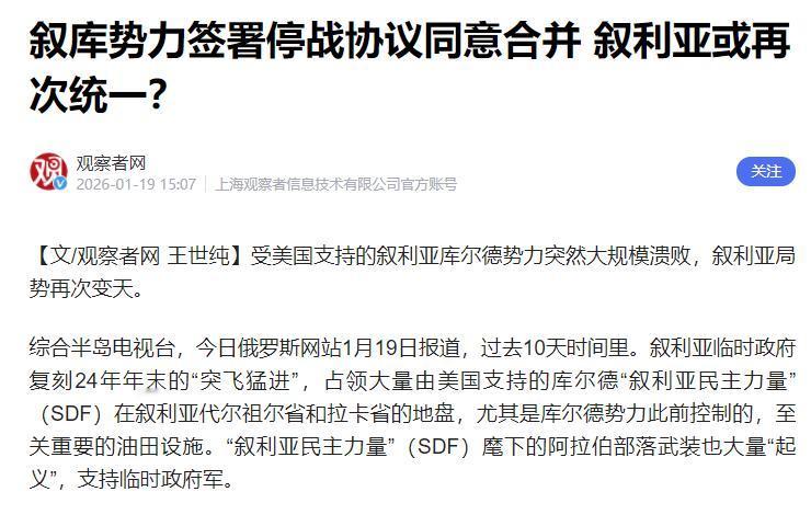 库尔德人这回,是真的被美国坑惨了! 说起来都让人觉得心疼又气愤,库尔德人这波纯粹就是被人家用完就扔的擦脚布。 想当年,美国要打ISIS极端组织,在中东没多少靠谱的地面力量,是库尔德人二话不说冲在了最前面,把自家的身家性命全押在了美国身上。 那时候的库尔德武装,拿着美国给的些破烂武器,就跟ISIS的亡命徒玩命,多少小伙子刚成年就上了战场,再也没回来,多少家庭因为这场仗支离破碎。 不光是拼命,库尔德人还把自己的老底全交了出去,控制的油田给美军用,手里掌握的中东地区情报毫无保留地分享。 就连日常的补给线都优先保障美军,说白了就是把美国当成了能依靠一辈子的靠山,以为抱上了“自由世界”的大腿,往后就能有好日子过。 可他们哪里想到,美国这所谓的“盟友”,从来就没把他们当自己人,从头到尾就是把他们当成牵制中东局势的棋子。 等到ISIS的威胁慢慢变小,美国在中东的战略重心要转移,库尔德人没了利用价值的时候,人家转身就把他们卖得干干净净,连句像样的告别都没有。 更让人不齿的是,美国转头就去找了刚在叙利亚掌权的朱拉尼,两个人关起门来就达成了交易,朱拉尼承诺帮美国清缴ISIS残余势力、保障美国企业在当地的利益。 美国就直接把库尔德人当成了交换的筹码,连眼皮都没眨一下。 要知道,朱拉尼那伙人原本就是极端组织出身,当年干的也是杀人放火的勾当,美国为了自己的利益,连这种人都能握手言和,更别说牺牲一个没什么话语权的库尔德人了。 1月18号那天,走投无路的库尔德人没办法,只能跟叙利亚过渡政府签了所谓的停火协议,说白了就是一份投降书。 协议里写得明明白白,库尔德人要把控制的地盘交出去,手里的武器全部上缴,就连经营了十几年、能给自己带来收入的油气田,也得无条件交给对方。 那时候的库尔德人心里可能还抱着一丝幻想,觉得只要自己服软让步,总能换条活路,让族人能安稳过日子。 可他们万万没料到,这份协议就是一张催命符,刚签完第二天,大屠杀就来了。 叙利亚政府军在科巴尼好几个地方,对着俘虏的库尔德士兵和民兵大开杀戒,连不少库尔德女兵都没放过,用步枪近距离射击还不够,甚至动用了冷兵器,那场面惨不忍睹。 而最让人寒心的是,面对库尔德人的惨状,他们曾经拼死保护的美国,却装聋作哑视而不见。 库尔德人在绝望中向美国求助,得到的只有空荡荡的美军营地,人家早就乘着直升机溜之大吉了,临走前还假惺惺地承诺会继续提供支持,转头就去大马士革跟朱拉尼把酒言欢。 更讽刺的是,美国的中东特使还公开表态,说库尔德势力对美国已经没有合作价值了,要跟朱拉尼政权加强合作。这话说得有多冷血,就知道美国有多没底线。 想想库尔德人这一路走来,真是太冤了。为了美国的反恐大业,抛家舍业、流血牺牲,把油田、情报、性命全搭了进去,最后换来的却是被无情出卖和屠杀。 这也彻底看清了美国的真面目,什么“自由世界”的灯塔,什么“盟友优先”,全都是骗人的鬼话。 在他们眼里,从来就没有永恒的盟友,只有永恒的利益,只要自己的目的达到了,盟友随时都能被牺牲。 库尔德人就是吃了太相信美国的亏,以为跟着强者就能有出路,却忘了霸权国家从来不会真正把弱小当成伙伴。 现在说什么都晚了,地盘没了,武器没了,亲人也没了,库尔德人算是被美国坑到了绝境。 这血淋淋的教训,也让全世界看清了美国的霸权本质,跟着这样的国家混,迟早得被卖了还帮着数钱。