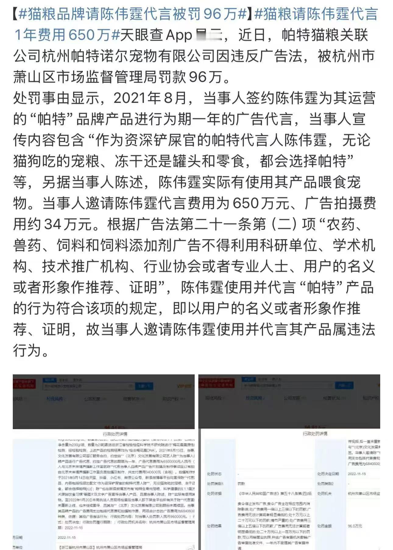 网传王俊凯将代言宠物食品品牌诚实一口,早前陈伟霆就因代言猫粮品牌被处罚,违反广告法