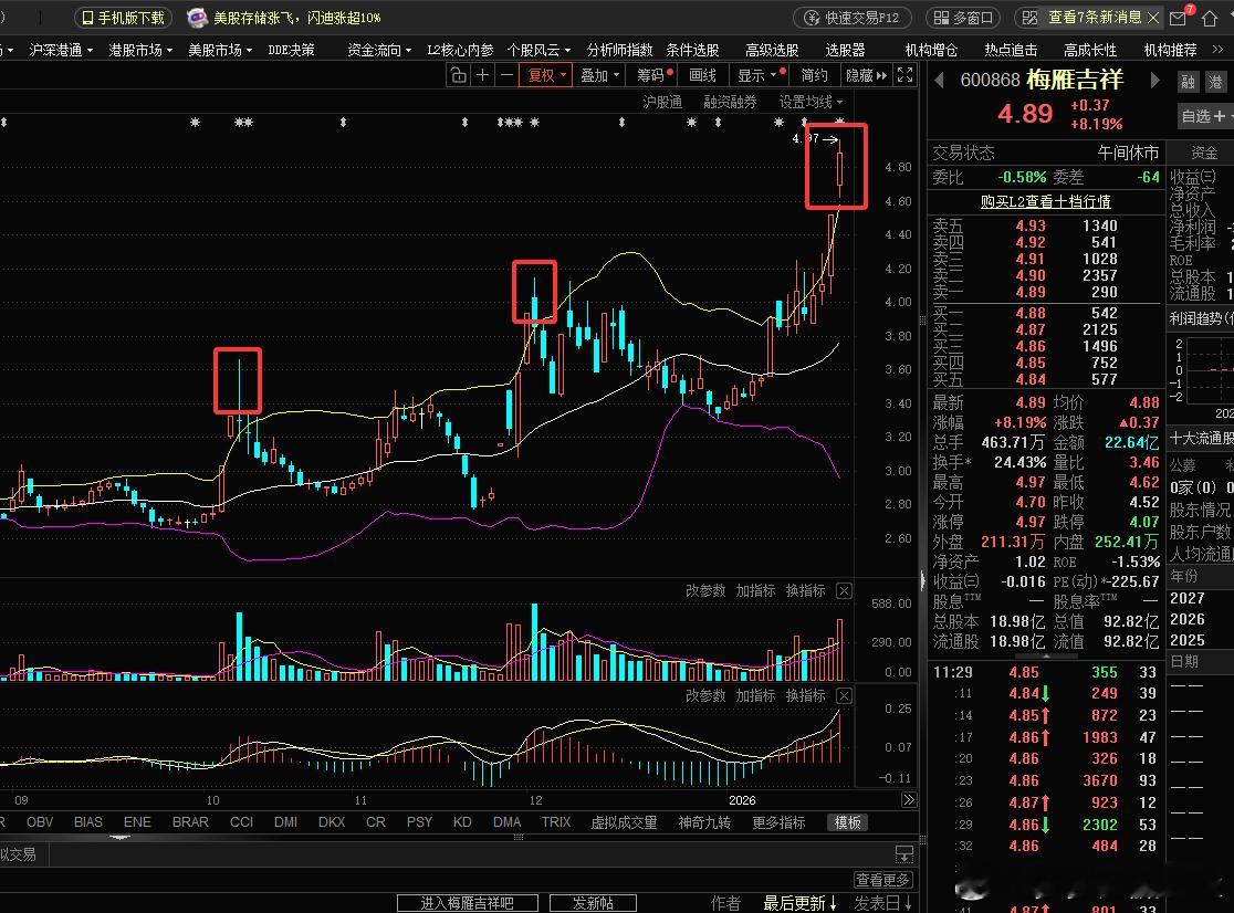 梅雁吉祥,这个市场为什么有那么多的人迷恋打板,最根本的原因就是普通人没有做空的机会。梅雁吉祥,这样的短期突然拉升的垃圾股,在大幅上穿布林线上轨,且放出巨量的票,你在4.9附近去做空9成都是赚钱的。欢迎加入我们的免费交流群股票财经