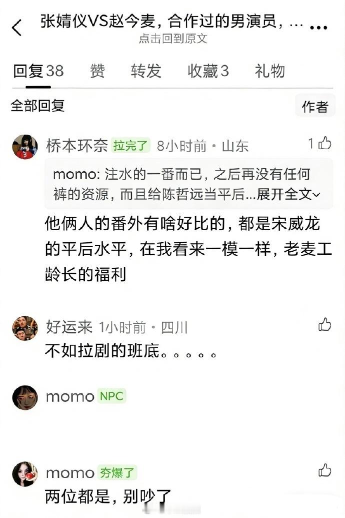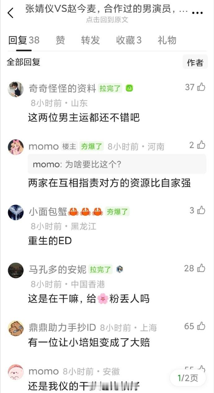 网友拉表对比了张婧仪和赵今麦过往合作过的男主,在看谁的资源更好只能说两个人的男主运都挺好的😹
