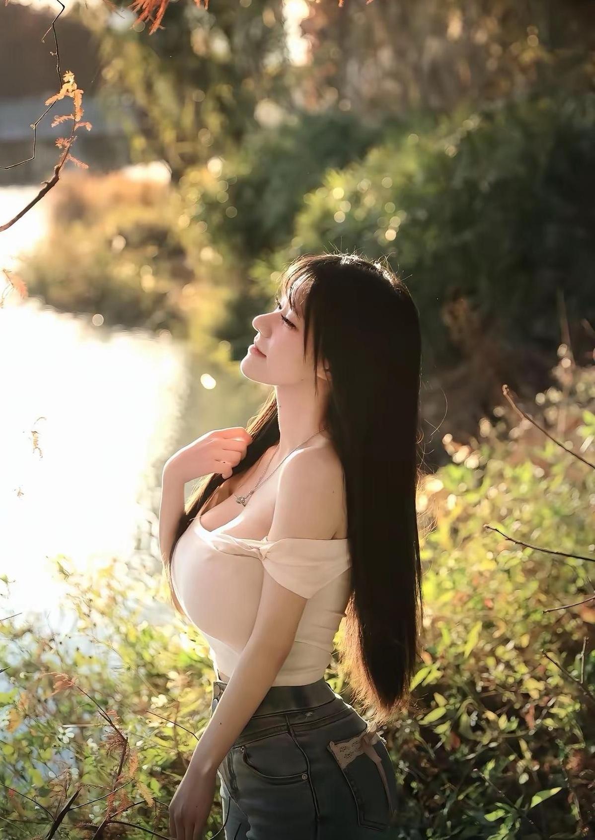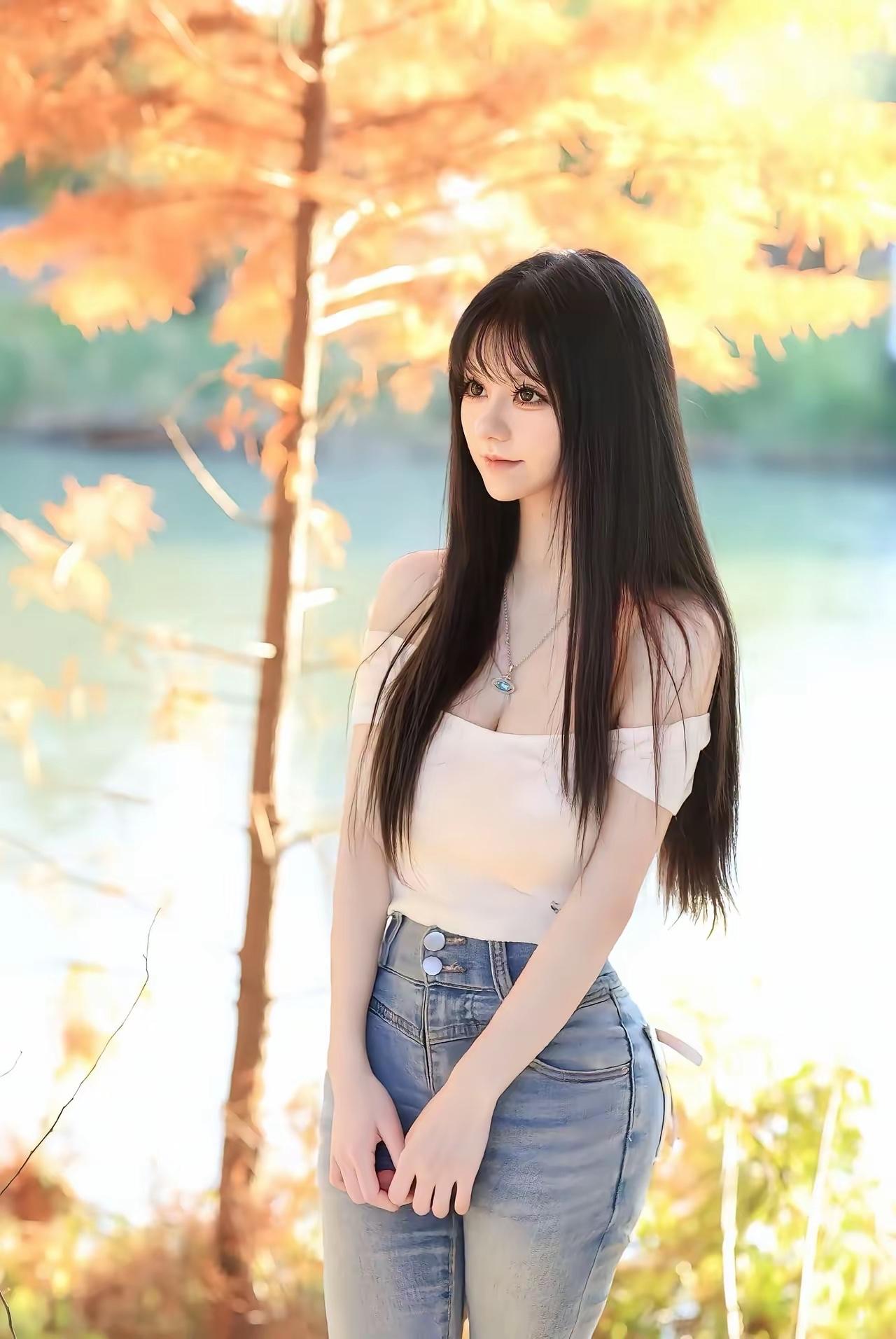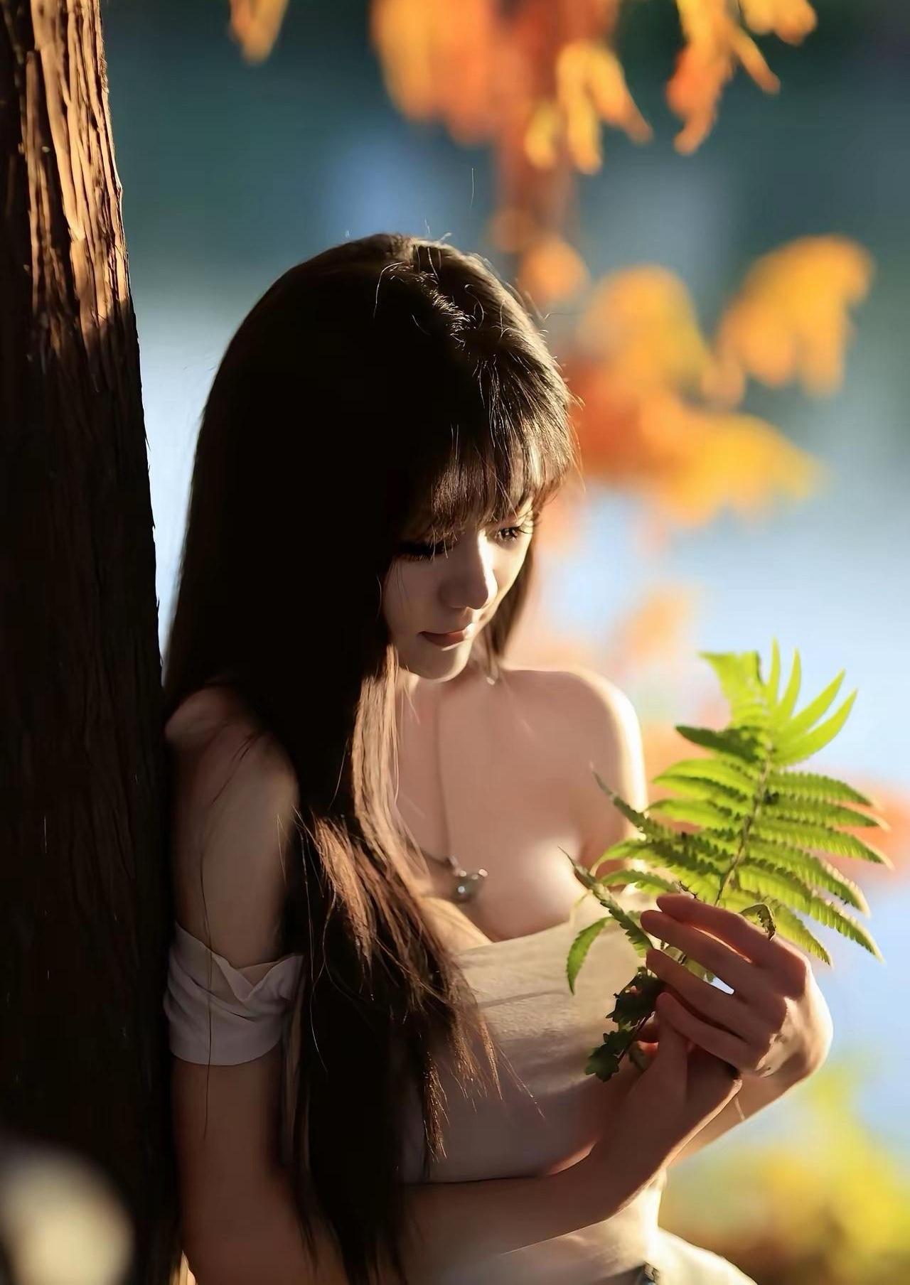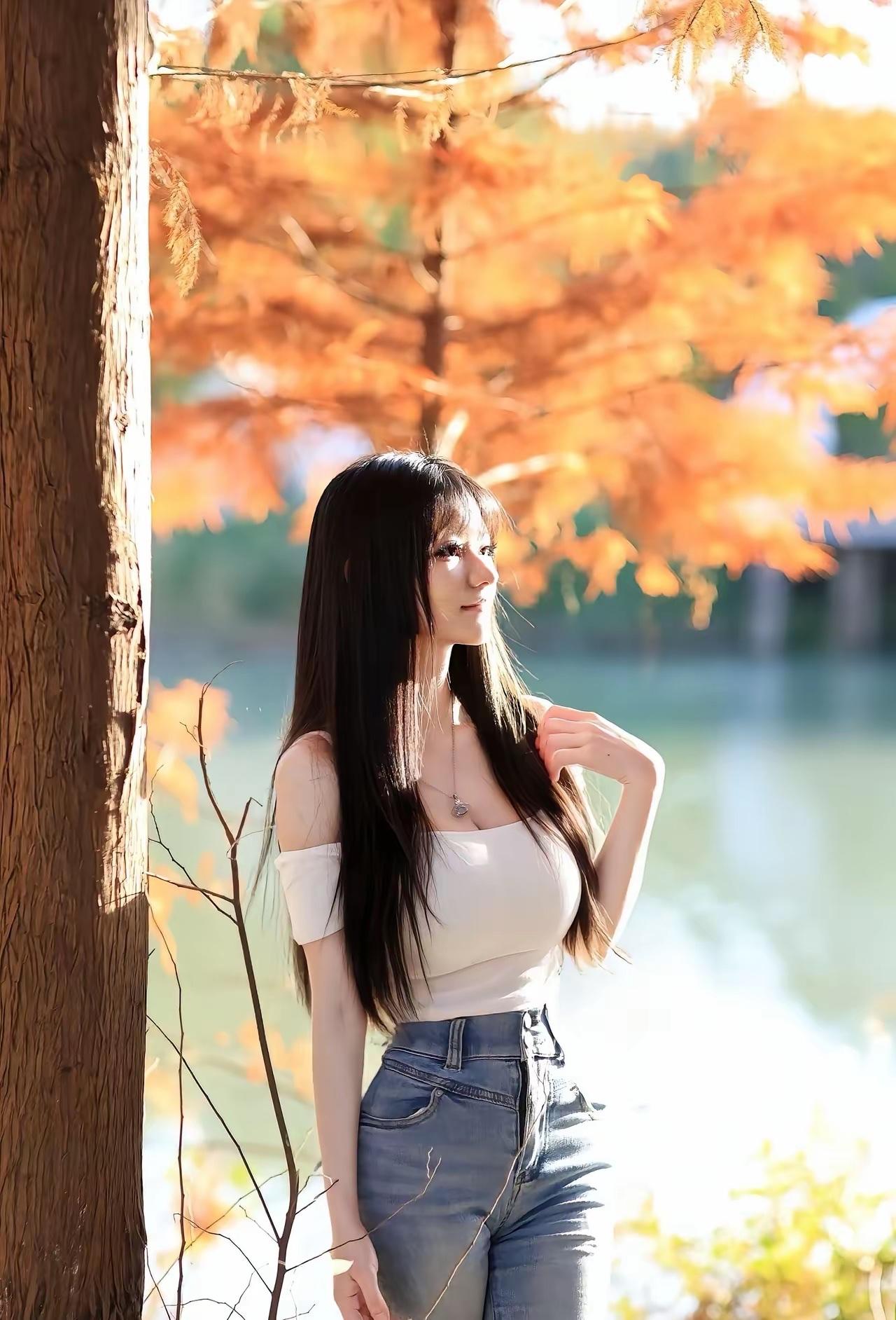 七律《秋岸佳人》 霜染层林映碧流,晴光暖透浅寒秋。 素衣漫惹丹枫色,长发轻依古木柔。 目极云天思渺渺,风牵衣袖意悠悠。 无端笑靥惊鸿起,一刹芳华动客舟。 自由体诗《秋岸光斑》 阳光把杉叶熬成蜜色 风在水面铺一层碎金 她靠在树影里 像一截被光浸润的玉 长发垂落时 带起细碎的风声 白衫与牛仔裤的褶皱里 盛着整个下午的温柔 目光漫过对岸的绿意 在云边轻轻落脚 没有谁刻意等候 只当是秋天 借她的笑 多开了一朵透明的花 图片来自网络,侵删