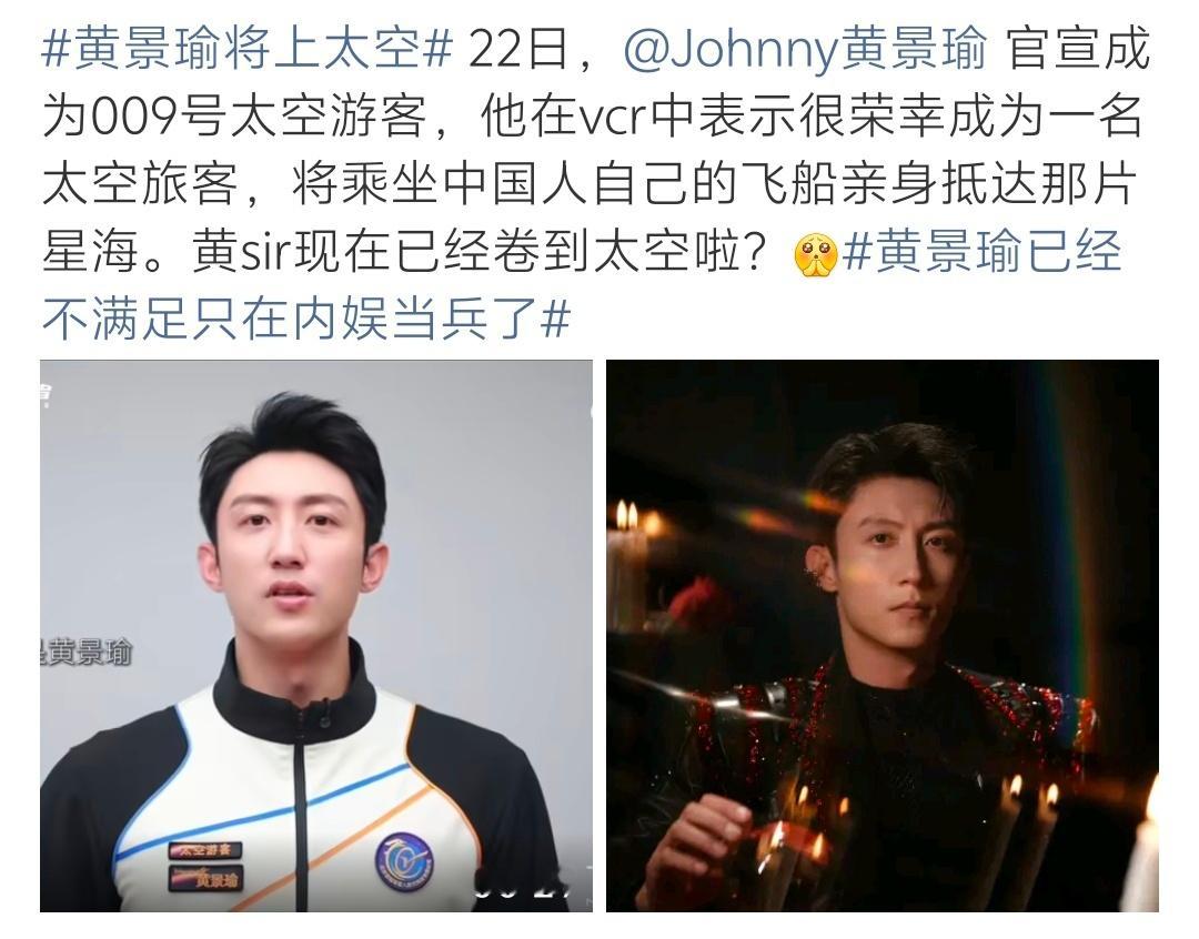 黄景瑜将成为第一个去往太空的艺人