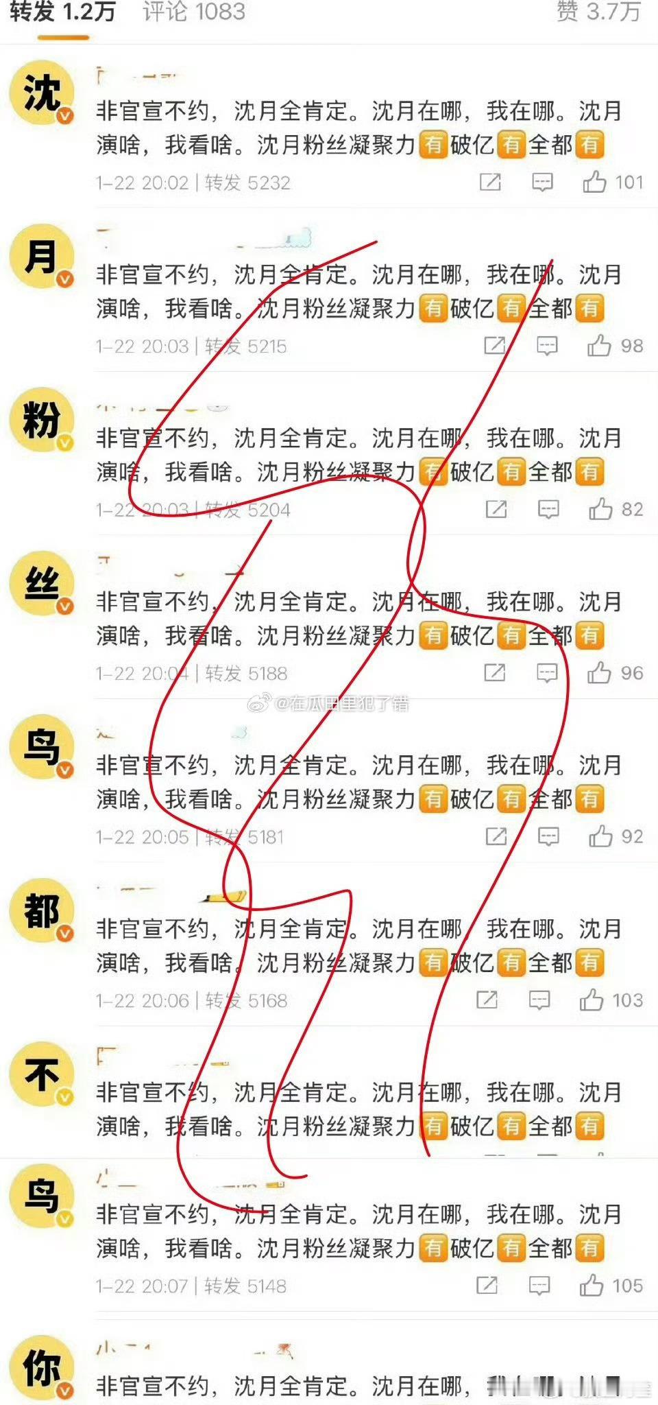 沈月粉丝也排字了,不过没提张晚意,就是表达支持了