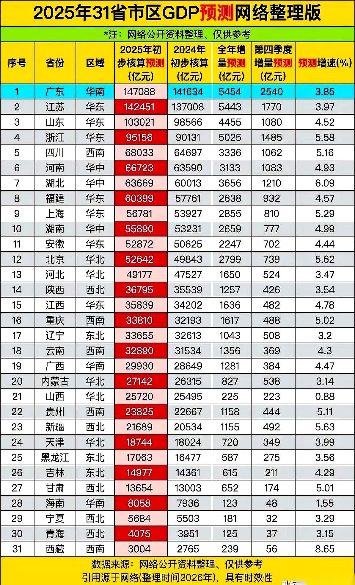 去年咱们国家多挣了5万多亿,你知道这钱,都去哪儿了吗? 广东、江苏、山东、浙江,就这四个大哥,跟凑一桌麻将似的,往那一坐,直接就分走了2.1万亿。 对,你没看错,四个省,拿走了快一半。 然后呢? 四川、河南、湖北,这仨兄弟也猛,组了个“斗地主”,拿走1万亿。 再往下数,福建、上海、湖南、安徽、北京……这几个尖子生,又分了1.3万亿。 算算账吧。 全国30多个省市,就前面这12个优等生,分走了全国新增财富的82%。 剩下的二十多个兄弟呢? 分那不到20%的“汤”。 残酷吗? 这就是现实。经济学上管这叫“马太效应”,强者恒强。 但你换个角度想,这压根不是什么分蛋糕不均。 这就是咱们国家的“火车头模式”。 没有这几个巨无霸发动机在前面玩儿命地冲,后面哪来那么大的惯性?国家这艘巨轮,必须得有几个主引擎发出最大的轰鸣,才能带着大家一起,乘风破浪。 所以别光看着数字感慨,看着这地图,你心里应该就一个字: 燃。