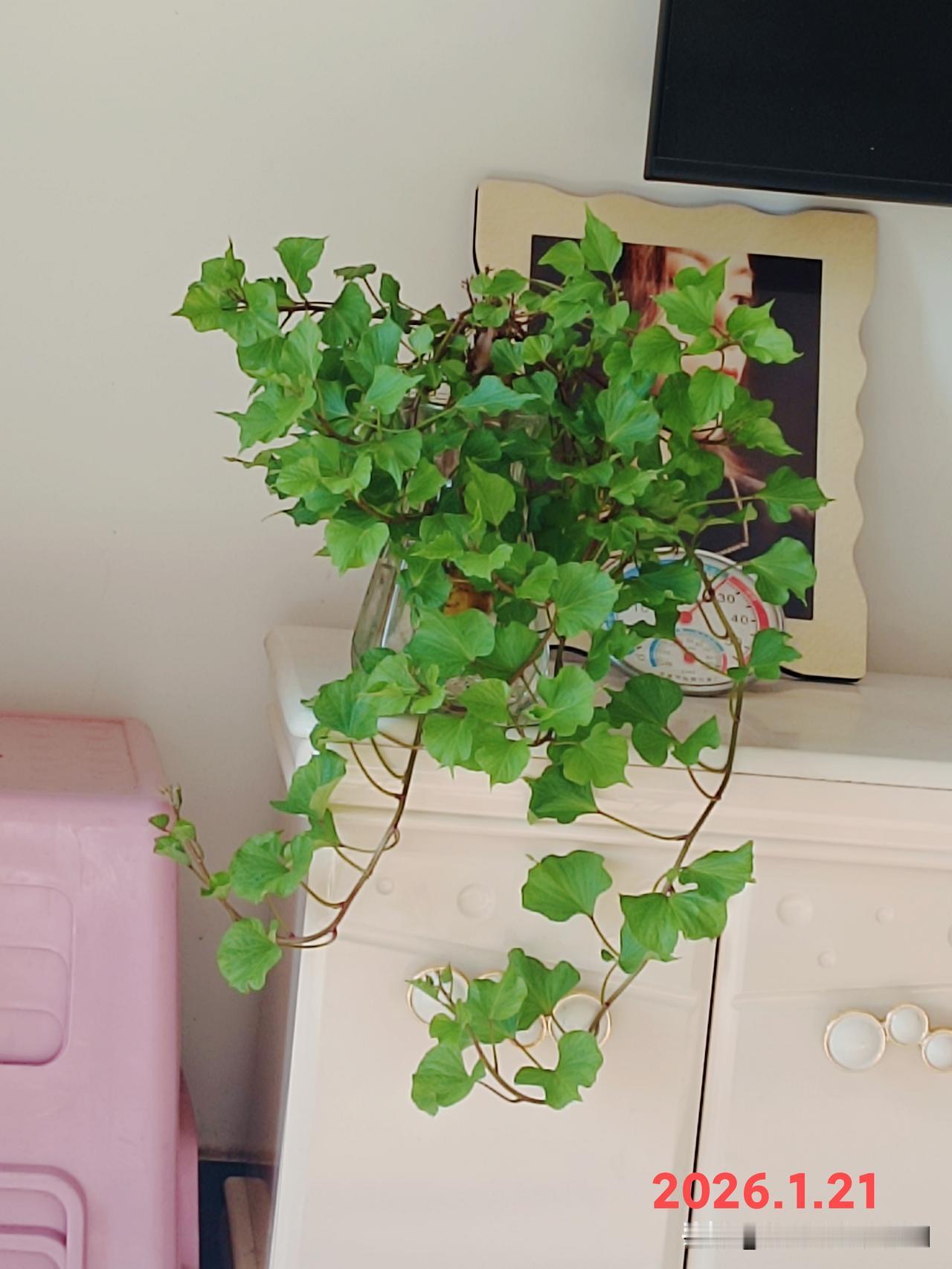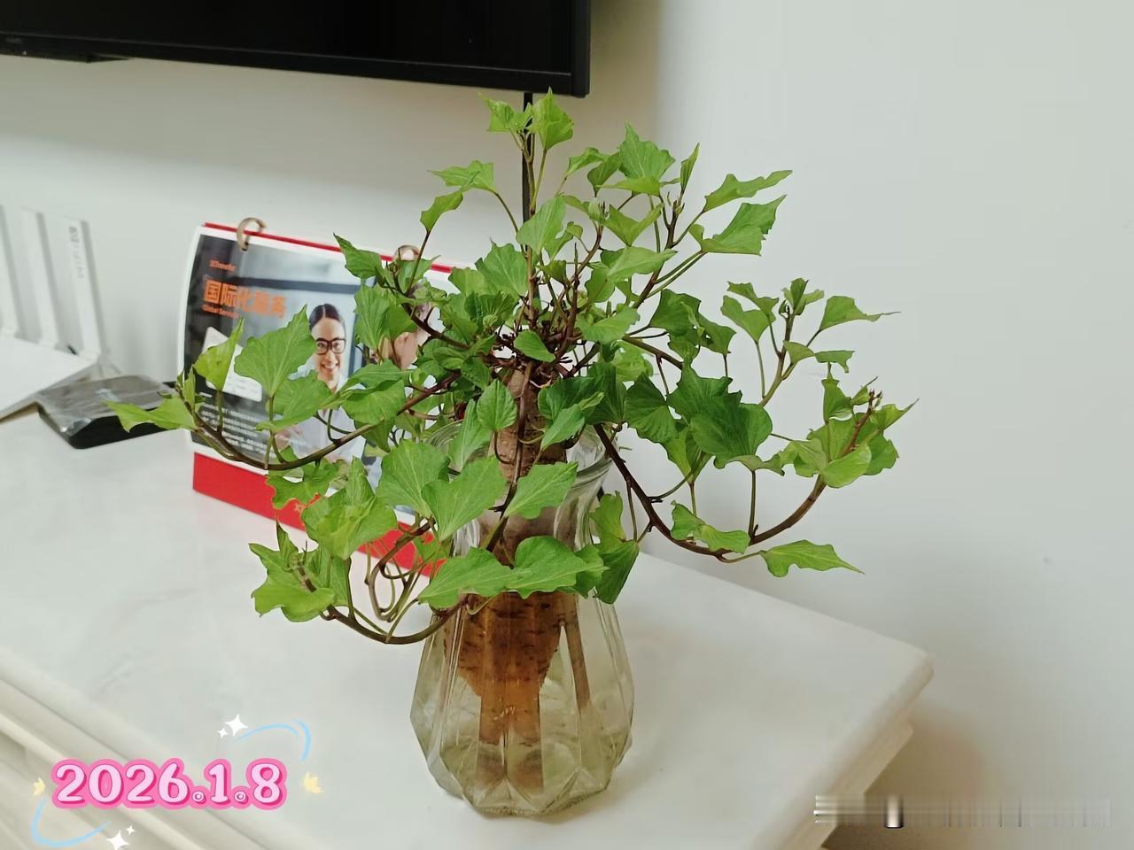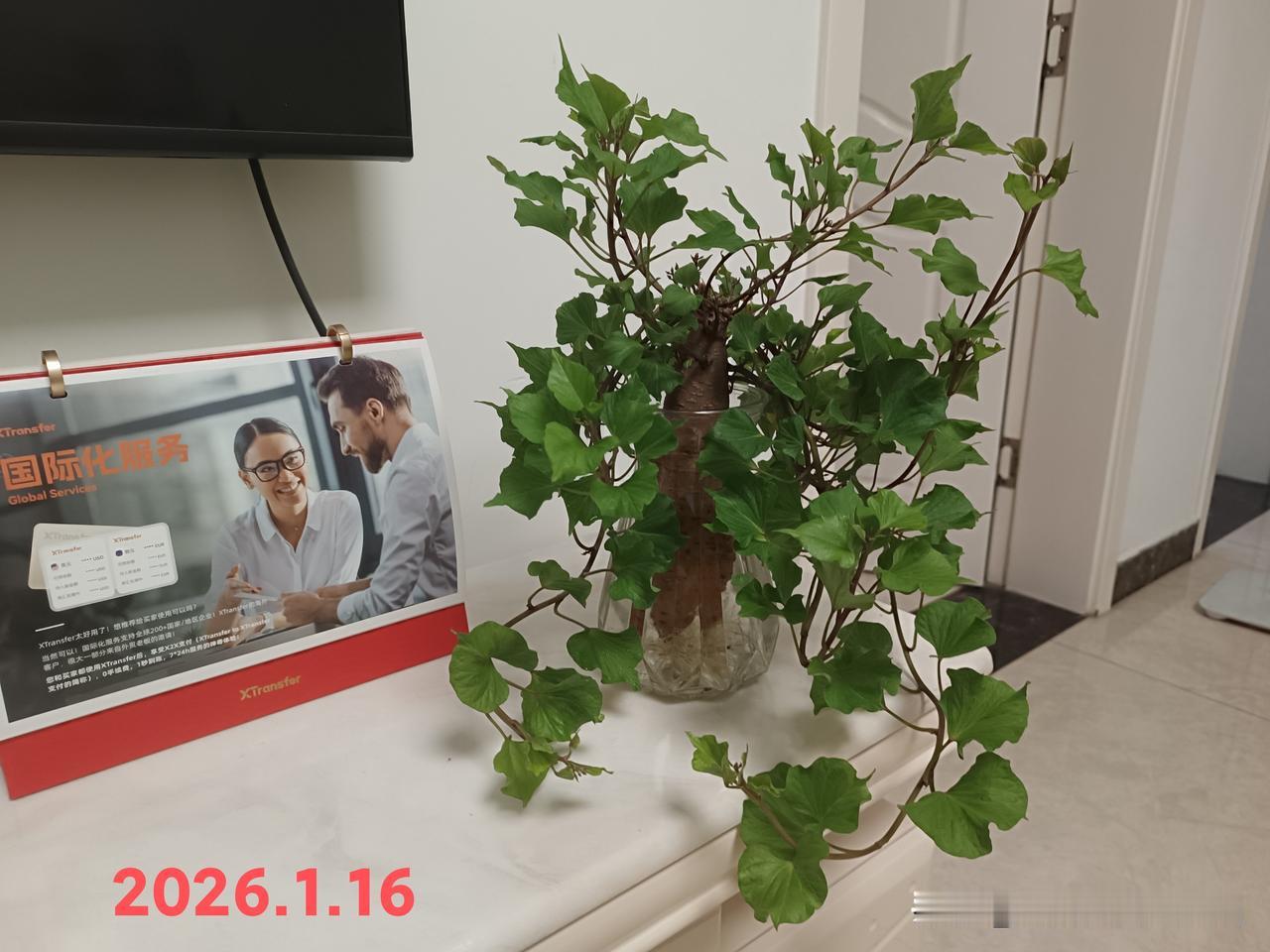 自将它泡入水中 已过去一月有余 瞧瞧 是不是颇有绿萝的感觉啦 有友友评论说 “接着养,等开花了晒美图呀” 实不相瞒 我也满怀期待 如今它肆意生长 看着满目的鲜活 忽然觉得开不开花 似乎没那么重要了 悄然伸长的藤蔓 每日带来的小惊喜 便是生活最温柔的赐予 期待它真正开花的那天 倘若等不到花开 我就继续晒它的“美颜” 毕竟能把红薯养成绿萝的模样 也是我的本事😎 地瓜水培