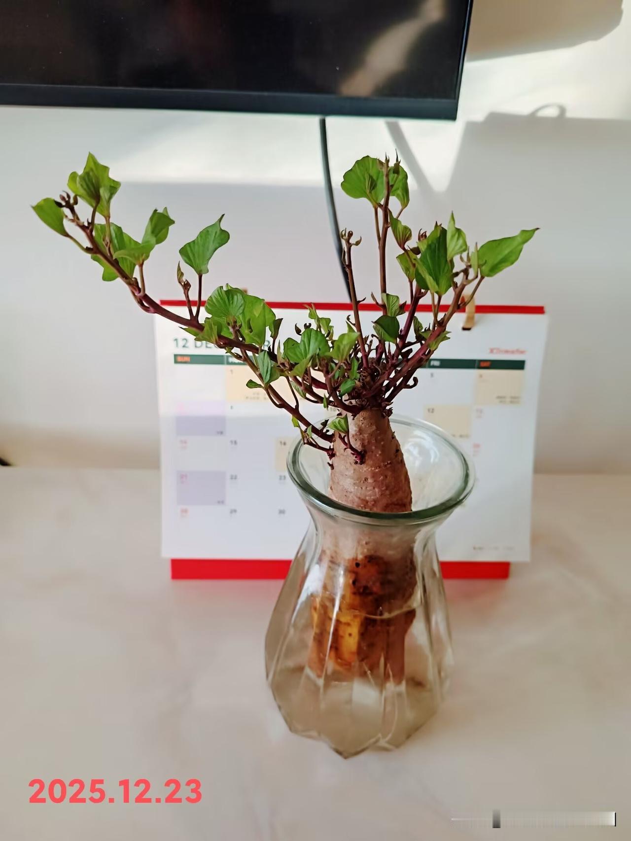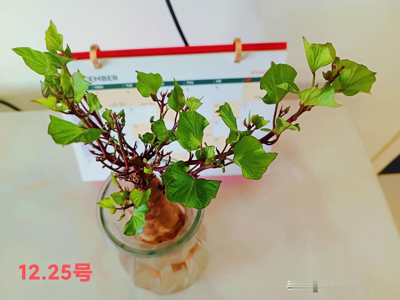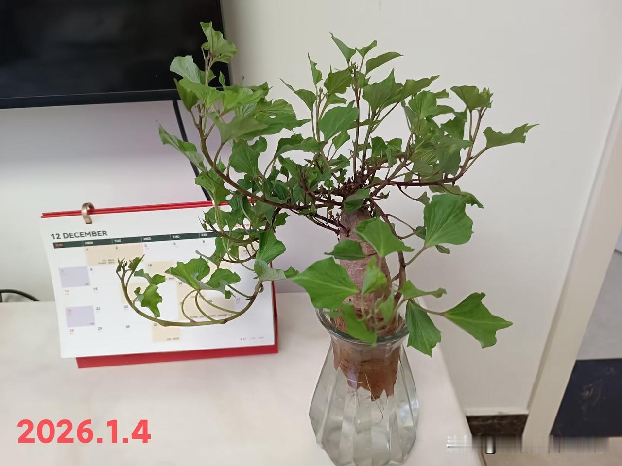 自将它泡入水中 已过去一月有余 瞧瞧 是不是颇有绿萝的感觉啦 有友友评论说 “接着养,等开花了晒美图呀” 实不相瞒 我也满怀期待 如今它肆意生长 看着满目的鲜活 忽然觉得开不开花 似乎没那么重要了 悄然伸长的藤蔓 每日带来的小惊喜 便是生活最温柔的赐予 期待它真正开花的那天 倘若等不到花开 我就继续晒它的“美颜” 毕竟能把红薯养成绿萝的模样 也是我的本事😎 地瓜水培