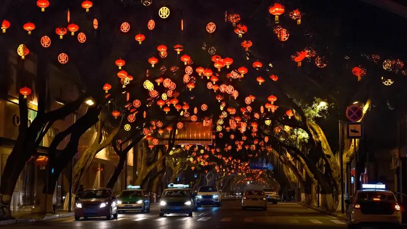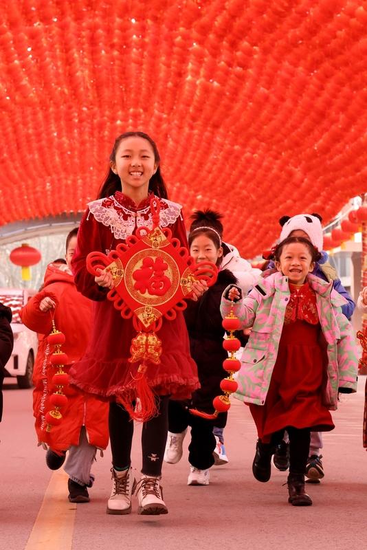 上句:张灯结彩送旧岁,盼请下联欢天喜地迎新年。