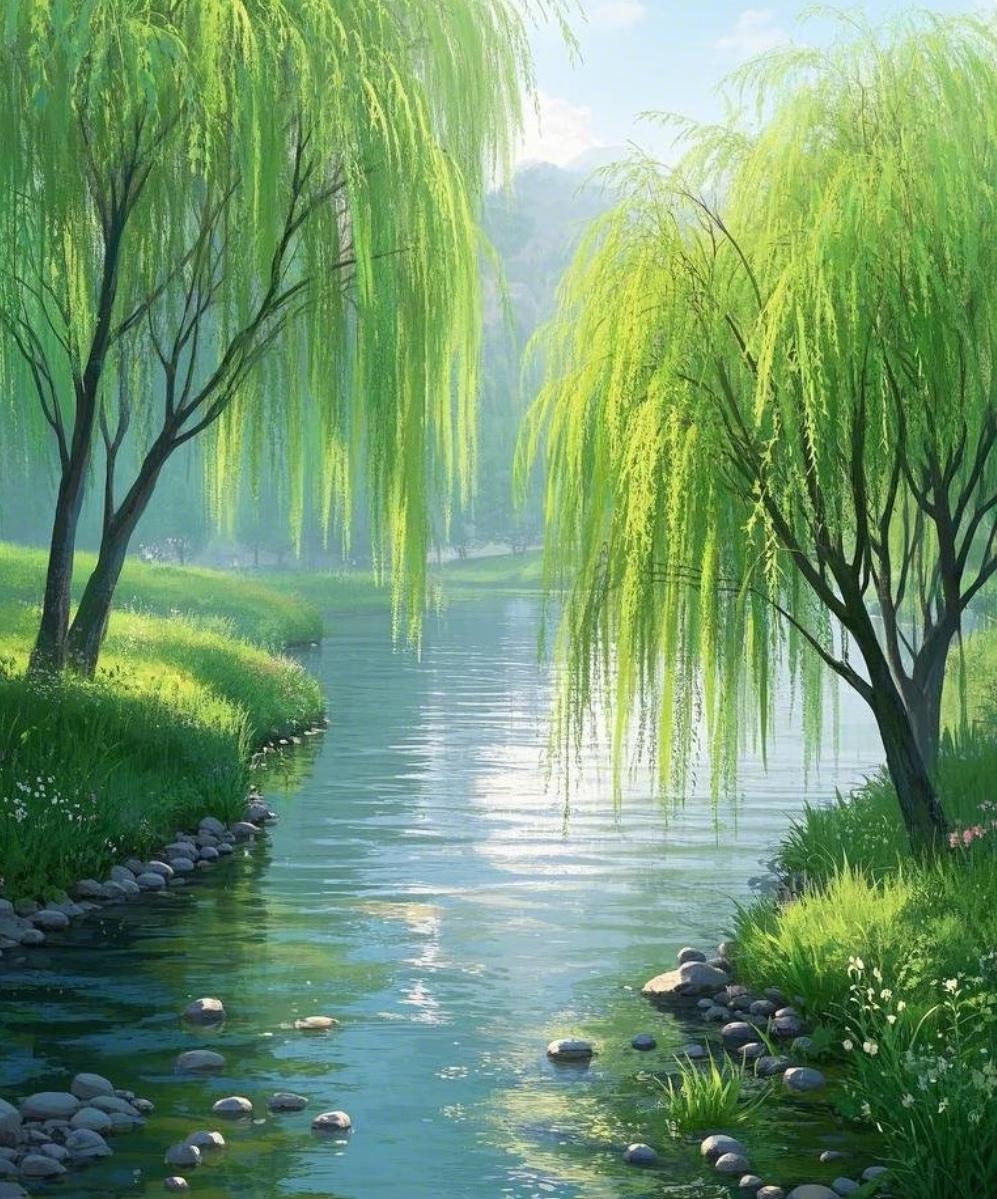 上联:片片轻帆摇绿波 下联:丝丝细雨润红花