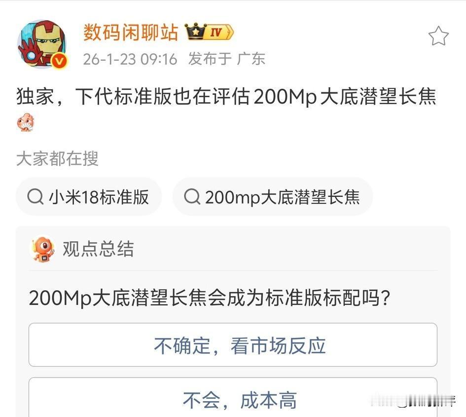 绿厂下一代旗舰标准版都会用两亿像素长焦镜头[奸笑]就是X9Pro那颗长焦镜头!1/1.56英寸,普及速度还是很快的,就看最终定版能不能落地了,内存涨价影像进一步升级,难不成真就标准版用3nm处理器,Pro系列用2nm最新处理器?以此来应对内存涨价[笑哭]绿厂系旗舰机今年都会用上两亿像素镜头,主摄/长焦/主摄+长焦双两亿[灵光一闪]