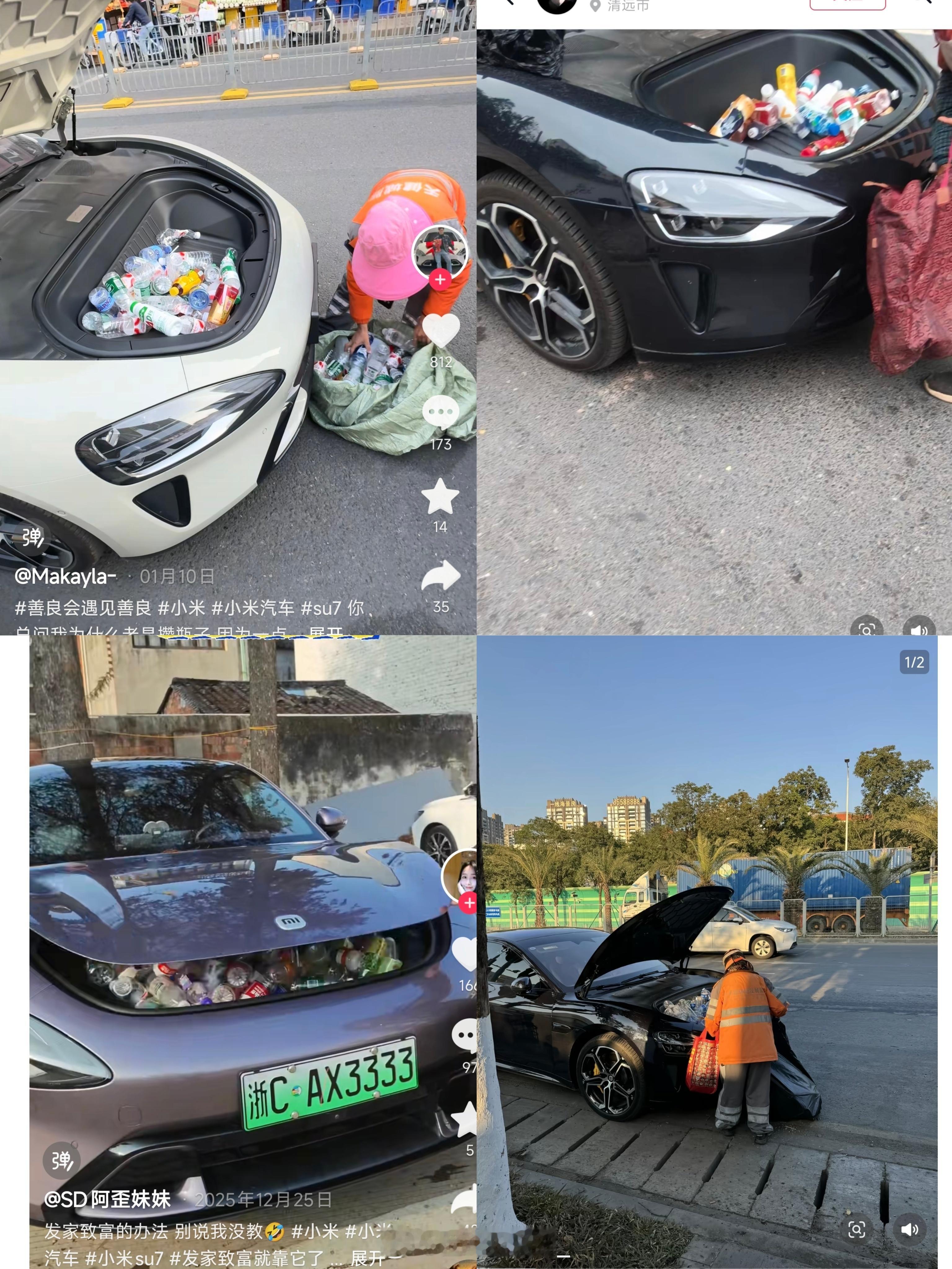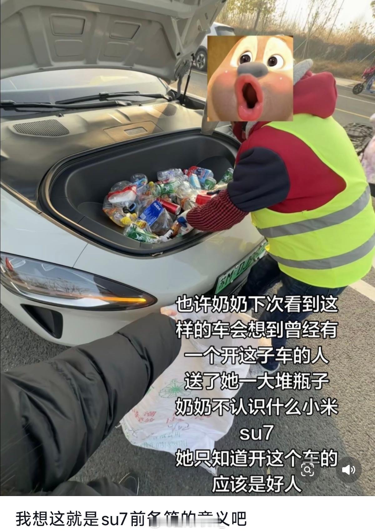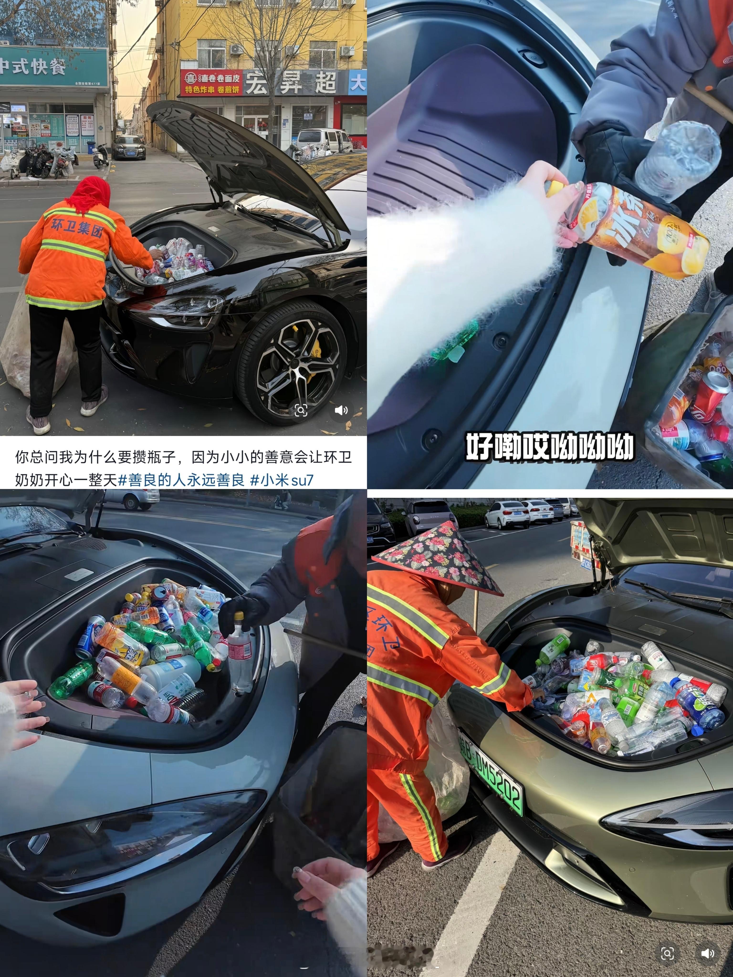 SU7车主的前备箱里没有花里胡哨的装饰,却装满了满满的善意,攒着送给环卫工人的空瓶子。开着帅气的车,做着最温柔的事。小米SU7车主暖心名场面小米汽车小米汽车小米su7我和我的小米汽车