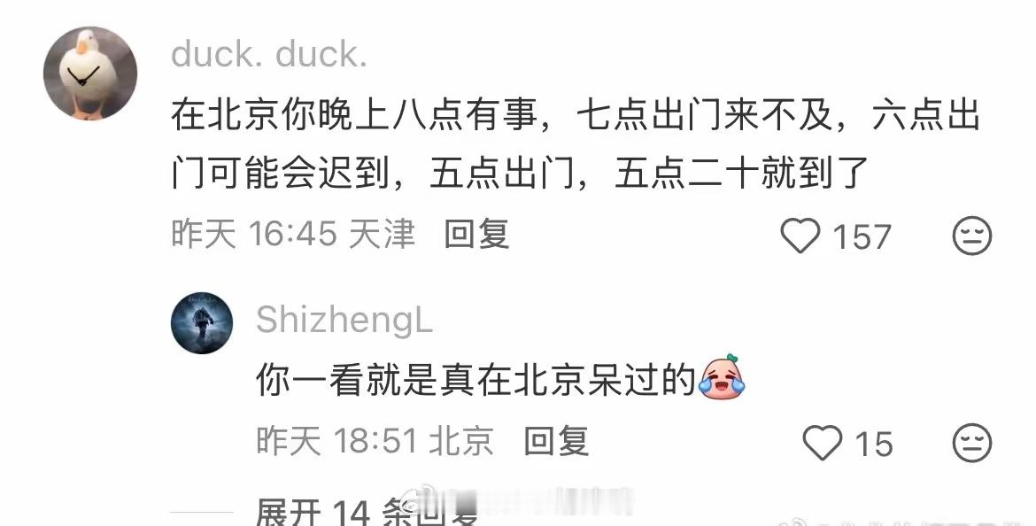 北京的交通很神奇 你早上9点上班 半小时的路程你早上7:30就得出门 但如果你早上7点出门你猜怎么着 您7:30就到了