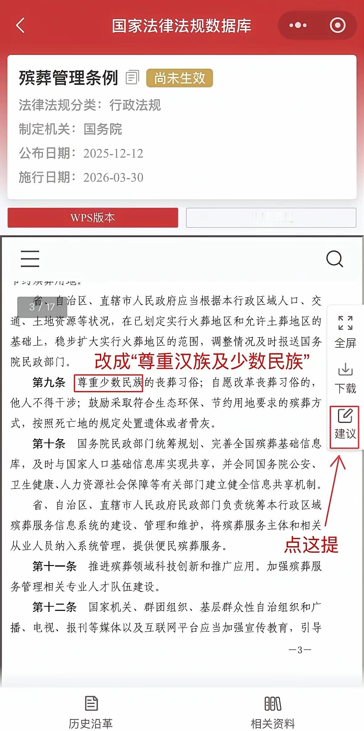 请大家停留一分钟,为了自己以及自己的后代们,在3月30日前赶紧提交建议去吧。 其实特别简单,先进入图一页面找到划红框这个条例点击进入。然后点击建议,对第九条中这个尊重范围建议修改为“所有民族”或者“增加汉族”。(图二) 麻烦大家都动动手去提建议,以及转发让更多的人知道。因为到了3月30日,这个法规就开始执行了。 无法想象以后华夏大地下再无“汉”,所以不求特殊,只跪求平等相待就行。 真的是万分紧急。