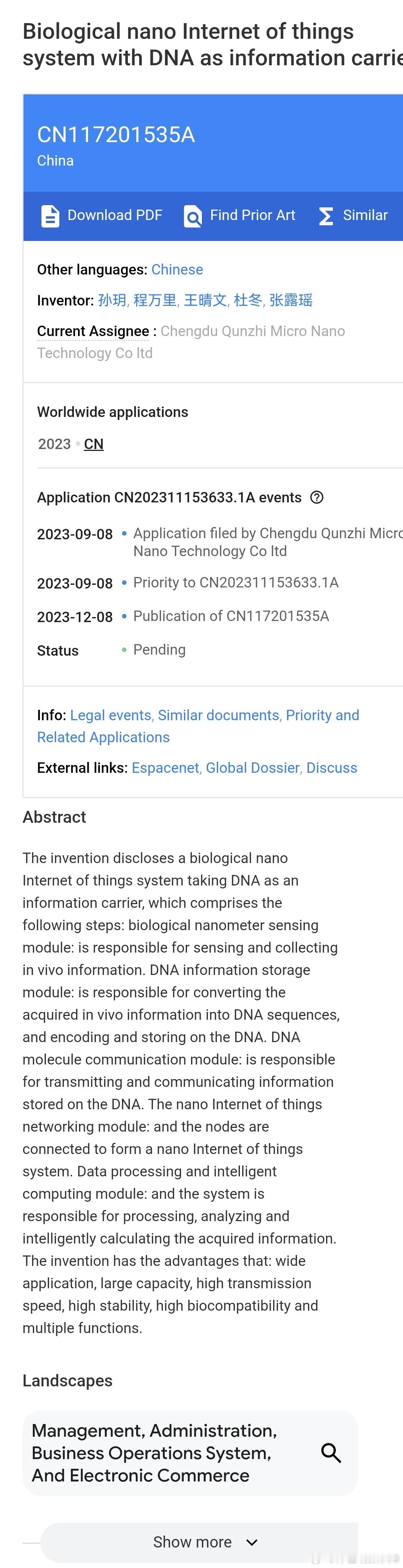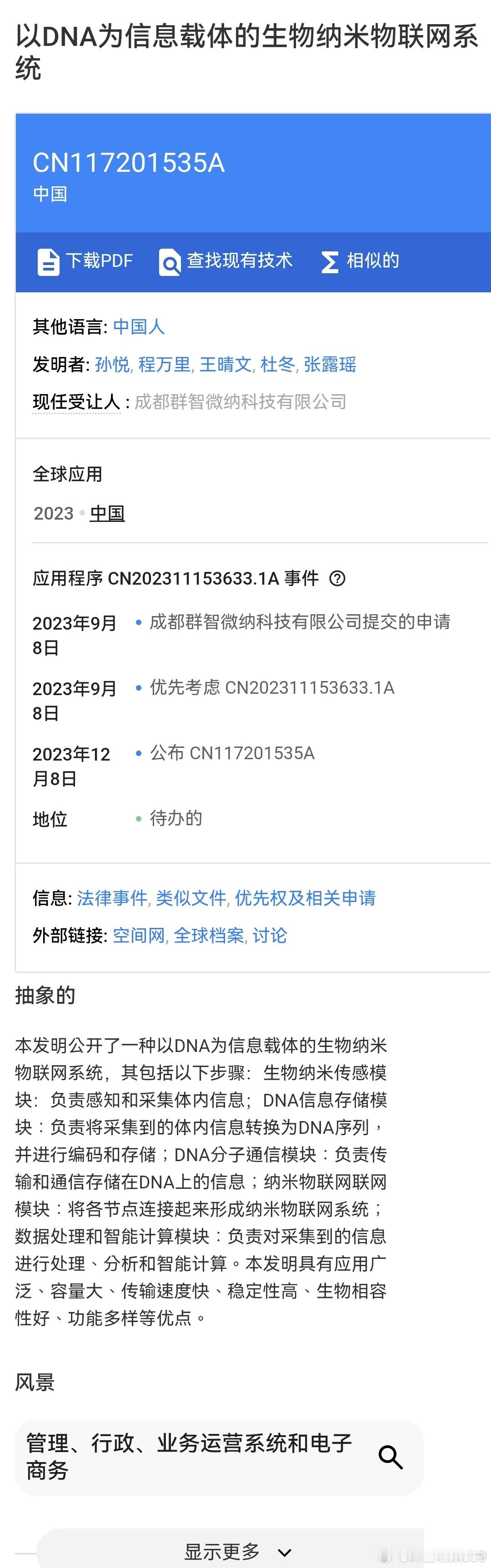 2023年全球专利申请: 以 DNA 为信息载体的生物纳米物联网系统🇨🇳