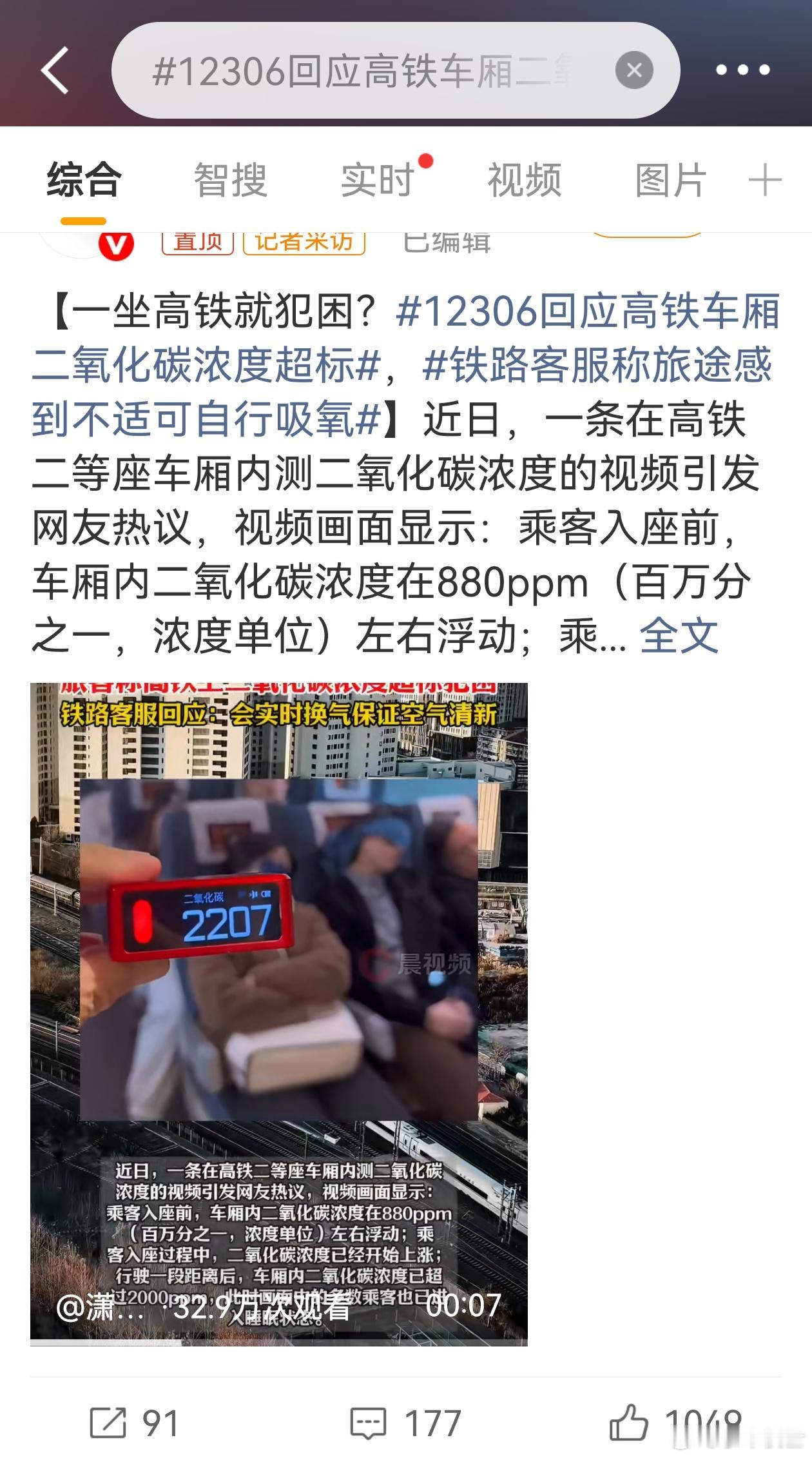 12306回应高铁车厢二氧化碳浓度超标想起了潘石屹手持仪器在高速路上测PM2.5
