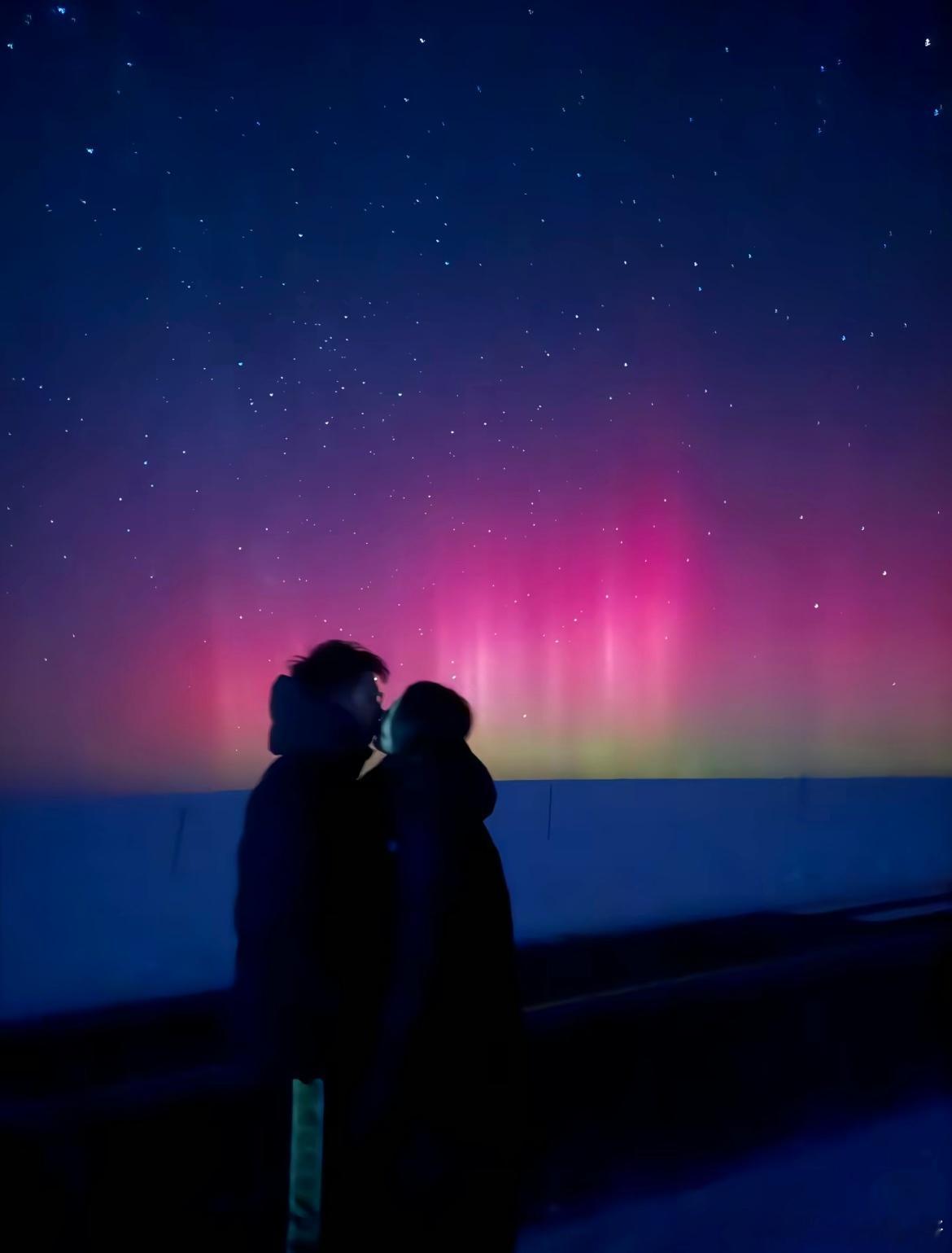 和男朋友呼伦贝尔看到了极光