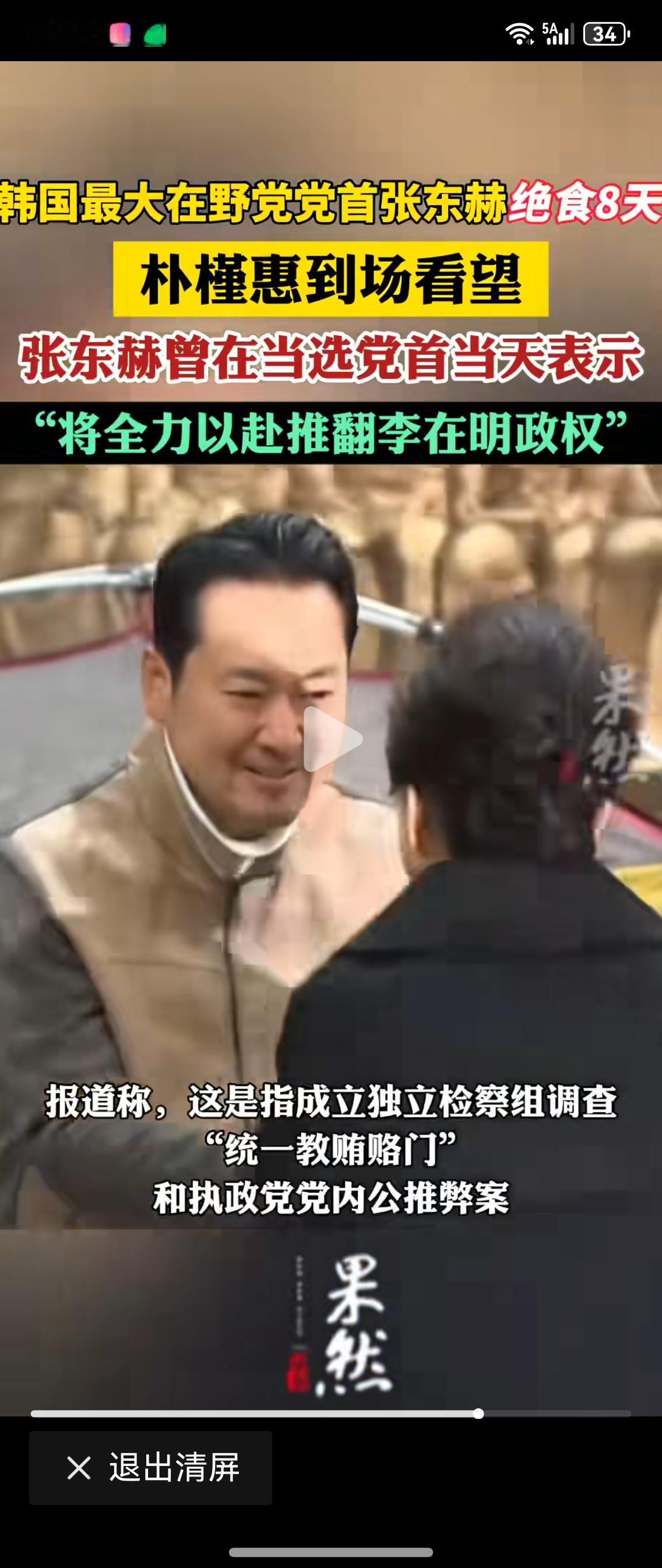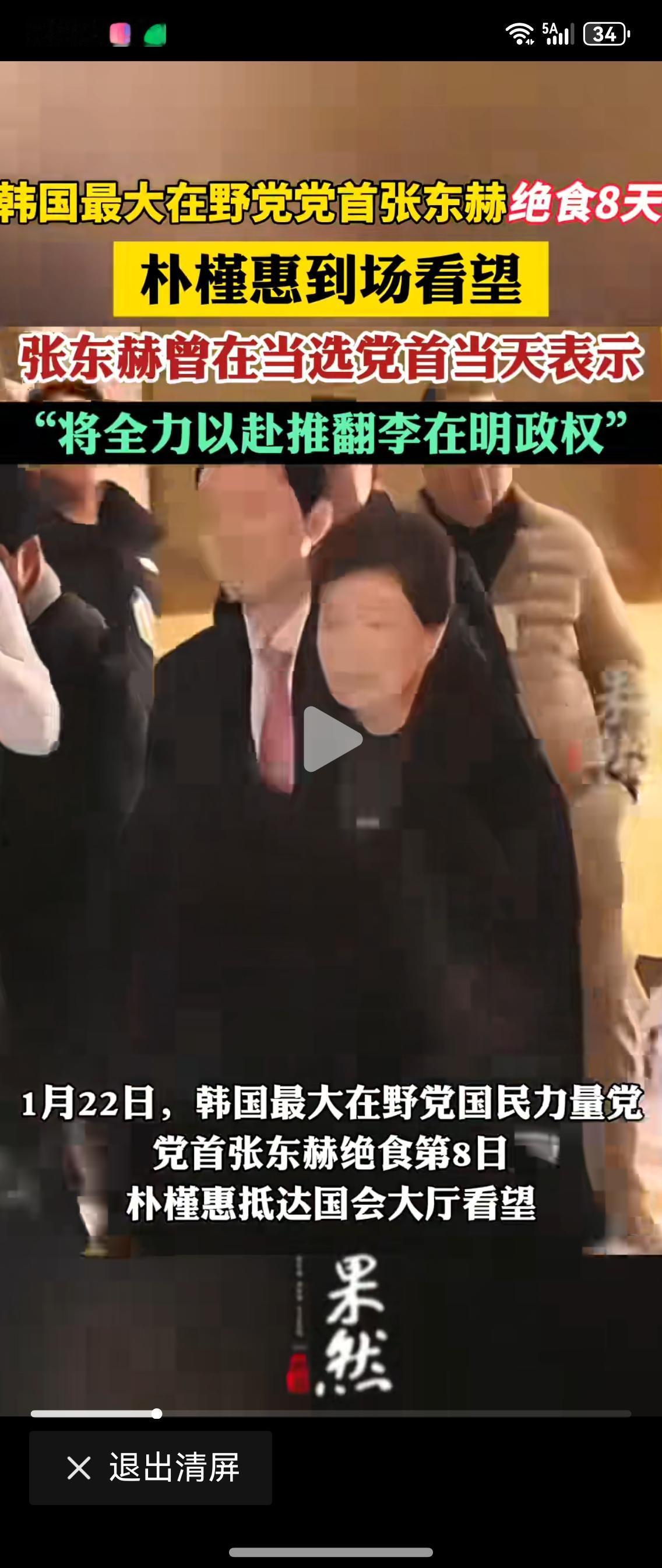 突然发现,韩国人都会玩儿这一手儿!想到年,李在明当最大的在野党党首时,为了推翻尹锡悦政权绝食过,然后改选时就当上了总统! 而今,韩国最大的在野党党首张东赫也来效仿了,据说已经绝食第8天了!称“将全力以赴推翻李在明政权”! 不过,他现在绝食的天数还没有突破李在明当年持续绝食的天数——24天!假如,张东赫突破了那个天数,会不会也能当上韩国下一届总统呢? 青瓦台魔咒,谁能说的准呢! 有消息称,韩国前任总统朴槿惠还到场看望!不知她俩啥关系?