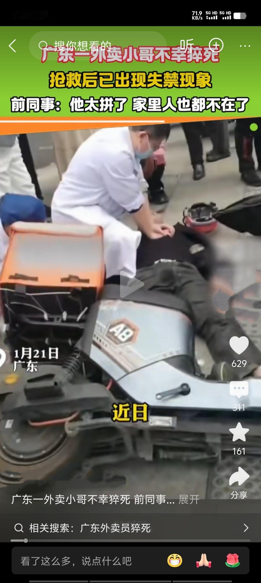 近日,一名外卖小哥不幸猝死,前同事悲叹“他太拼了”。为了多接单、多赚钱,他日夜奔波、风雨无阻,长期高强度工作让身体不堪重负。他的离去令人痛心,也警示着大家:赚钱虽重要,但生命更宝贵,莫让过度拼搏透支了健康。送外卖事故