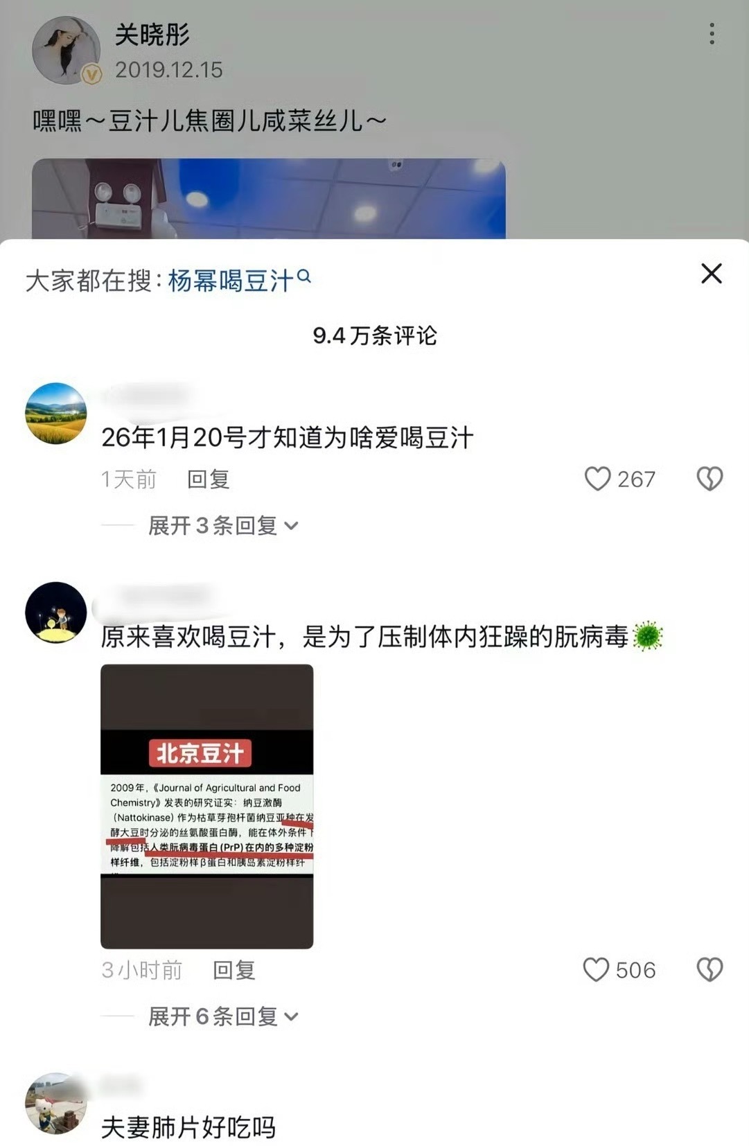 抖人造谣关晓彤喜欢喝豆汁是因为她吃人肉,吃人肉会有朊病毒,而豆汁可以抑制体内的朊