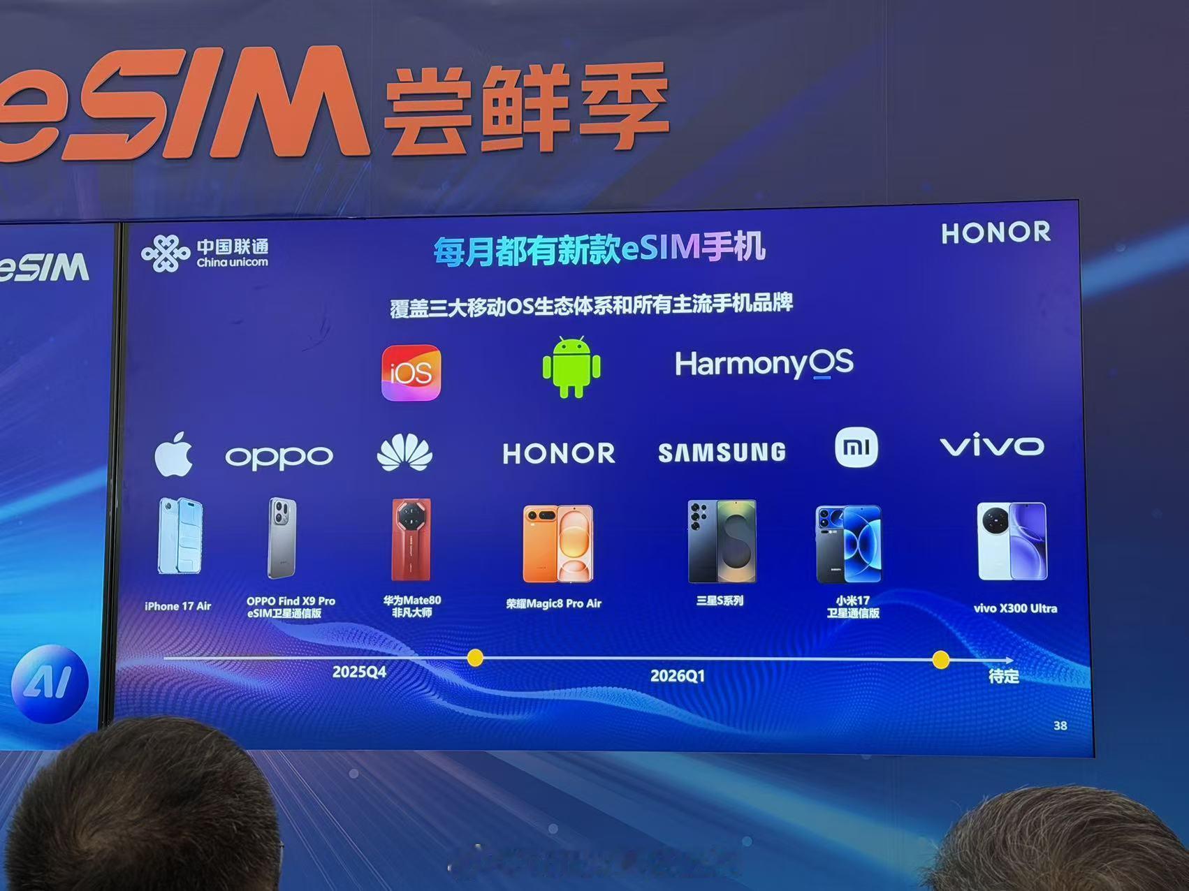 国内市场接下来即将上市的具备 eSIM 功能的手机被中国联通旗下的联通华盛提前披露了……除了已经上市的 iPhone Air、OPPO Find X9 Pro eSIM 卫星通信板、华为 Mate 80 非凡大师和荣耀 Magic 8 Pro Air ,后续支持 eSIM 的国行机型包括了:· 三星 Galaxy S 系列新品· 小米 17 卫星通信板· vivo X300 Ultra
