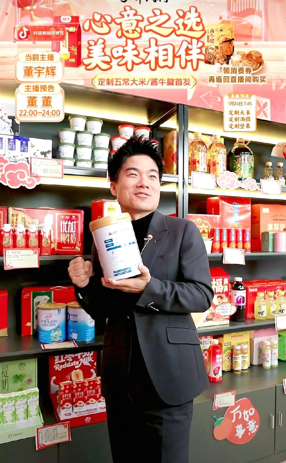 这是啥超市?还能随便拿?董董、汉森两位气氛组组员上场,各种画面轮番出现。董宇辉问:“你俩干啥来了?” 董董说:“逛超市呢,听说拿多少算多少,随便拿。” 宇辉说:“你俩拿吧,从你俩工资里扣。” 看这俩人,这气氛烘托的,太可以了,一人背一个包,还推了一个购物车。两人一上来,直播间瞬间热闹起来了,瞬间直播间里炸馓子的画面,给老丈人送礼的画面,给老丈母娘买奶的画面……通通都出来了。真的是太搞笑了! 这个时候你就发现了三个男人一台戏比三个女人唱的还精彩! 董宇辉 与辉同行