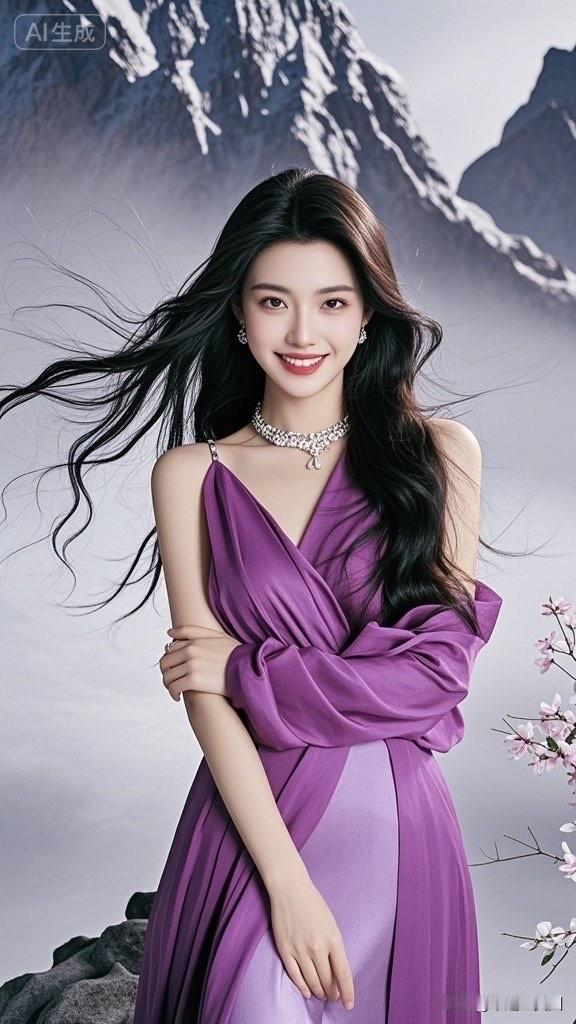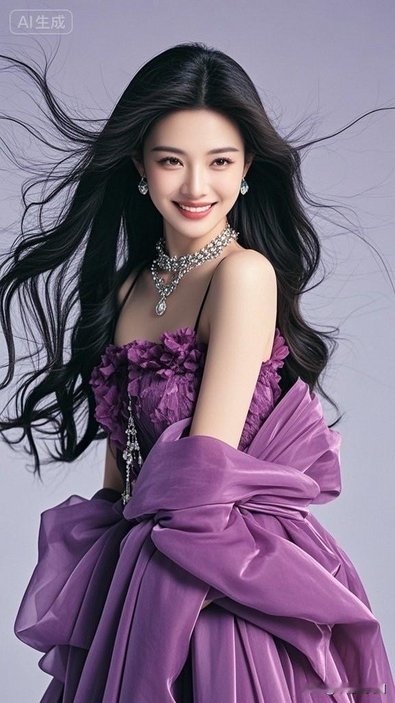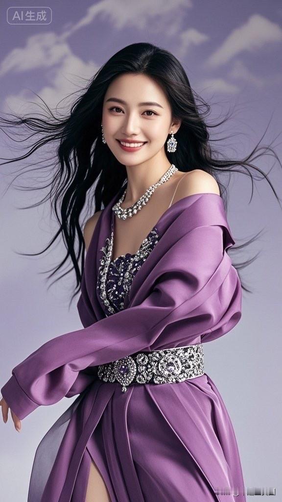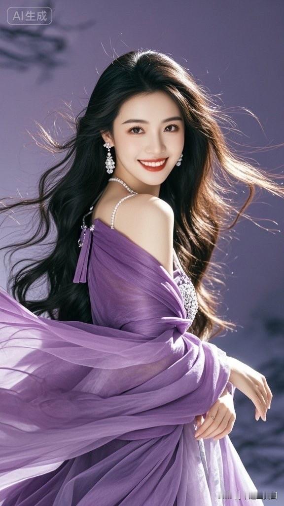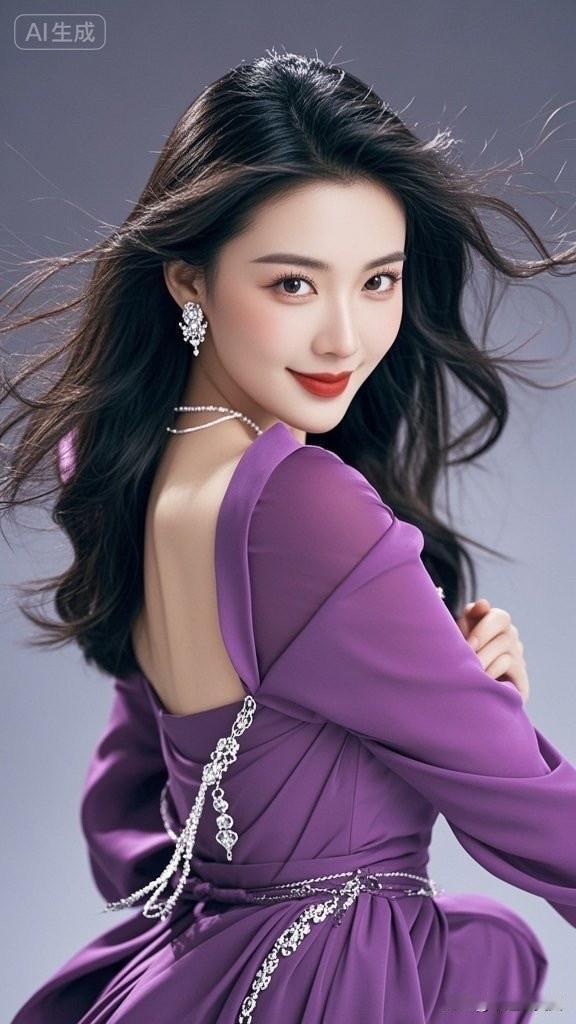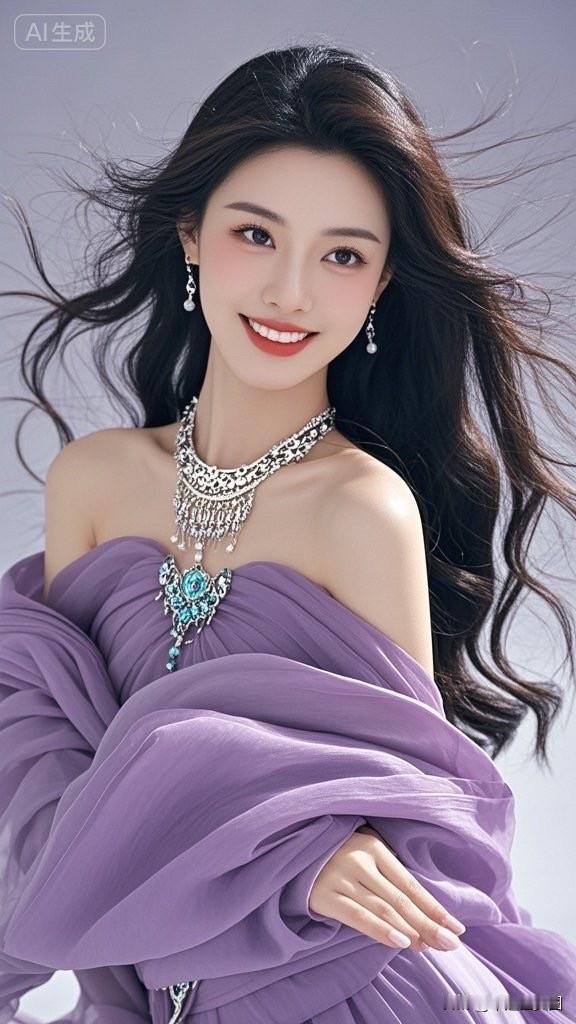 紫色礼服的优雅魅力,闪耀的耳环和项链,尽显女性魅力!