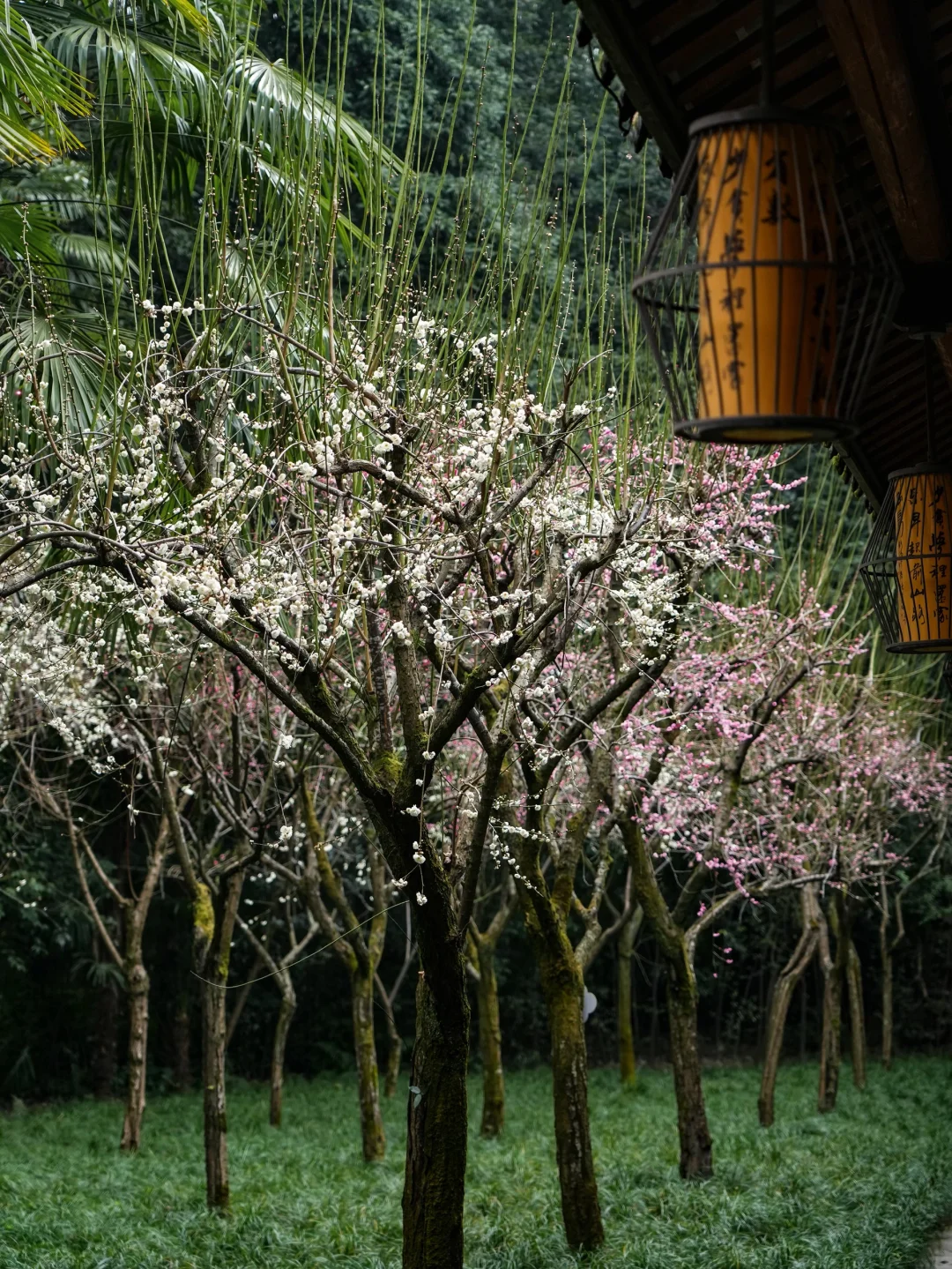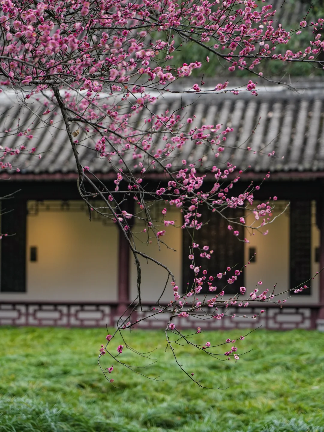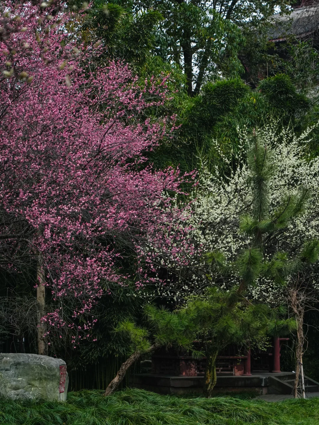 这两颗梅花就在杜甫草堂里面的仰止堂门口哦~ 去的话不要错过这里🌸一红一白,很好看😍