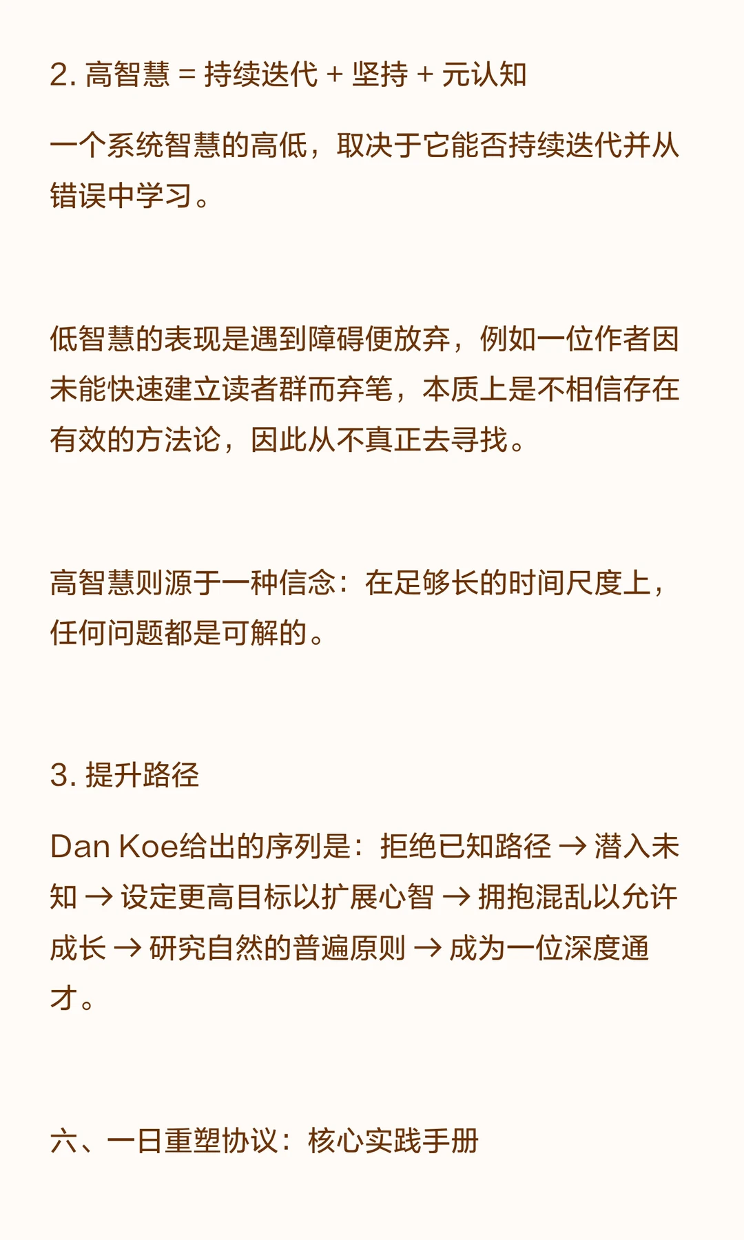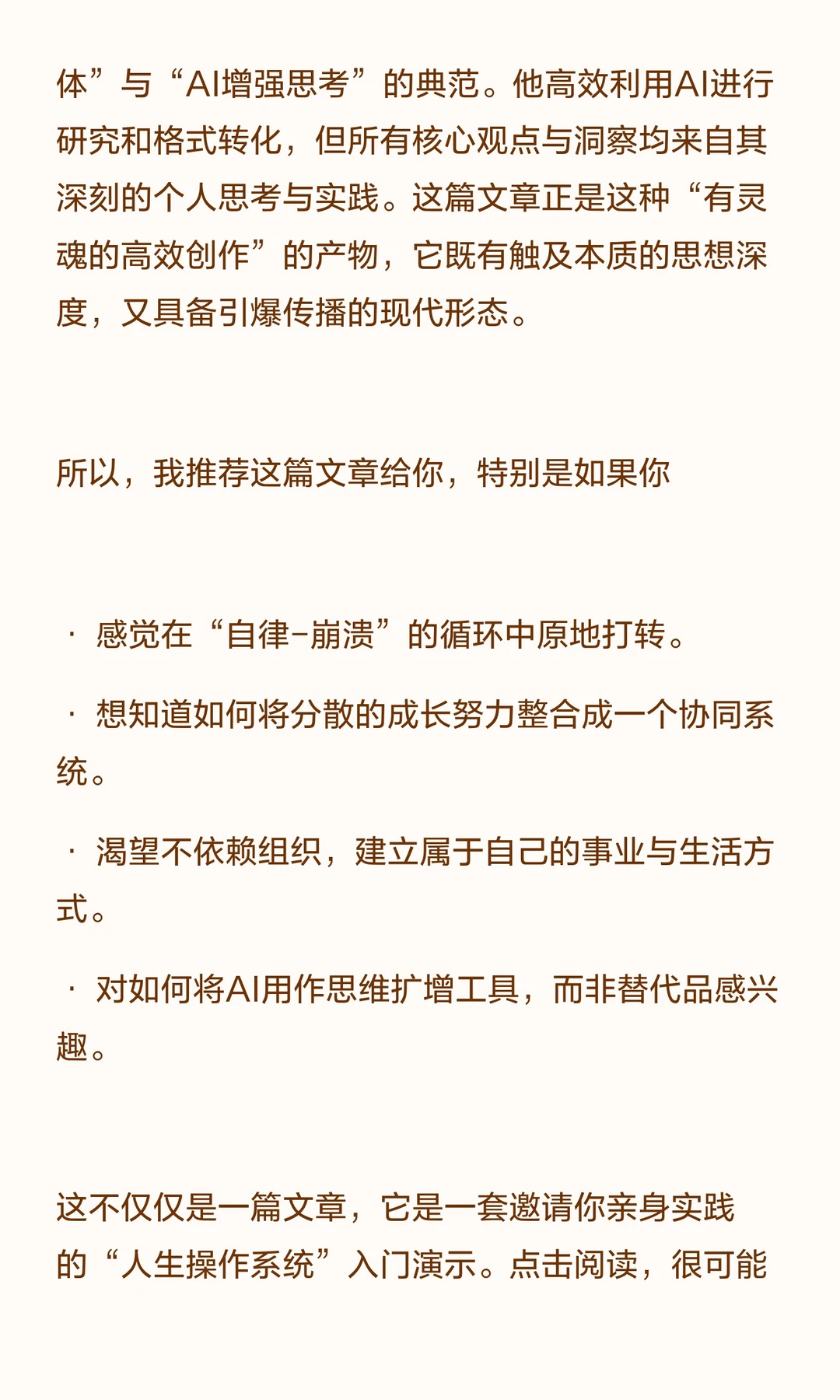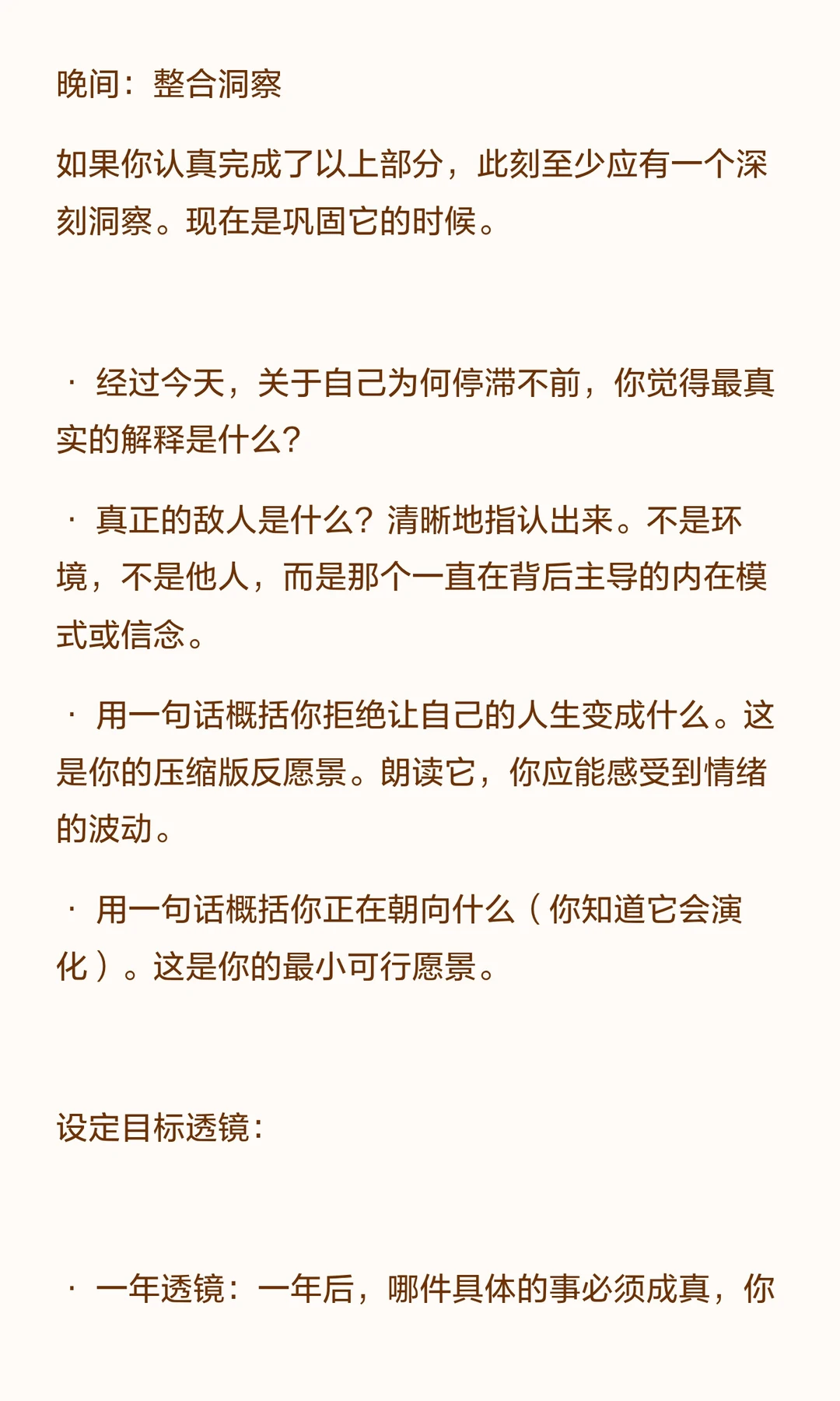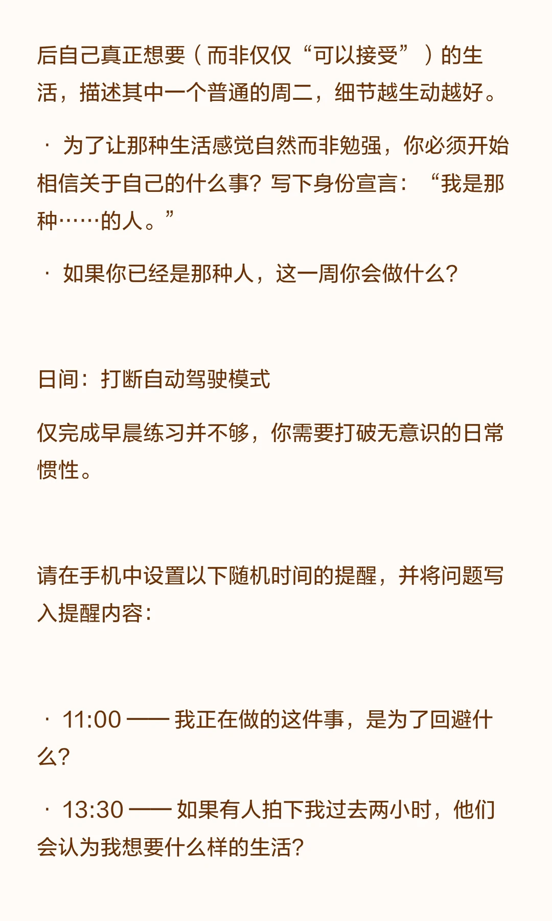 这篇文章通过“改身份”而非“改行动”,提供系统性解决方案,帮助读者从身份认同入手,重塑生活。 核心在于重塑潜意识,在于打破旧模式,建立新身份,通过“一日重塑协议”整合洞察,最终实现持久改变。