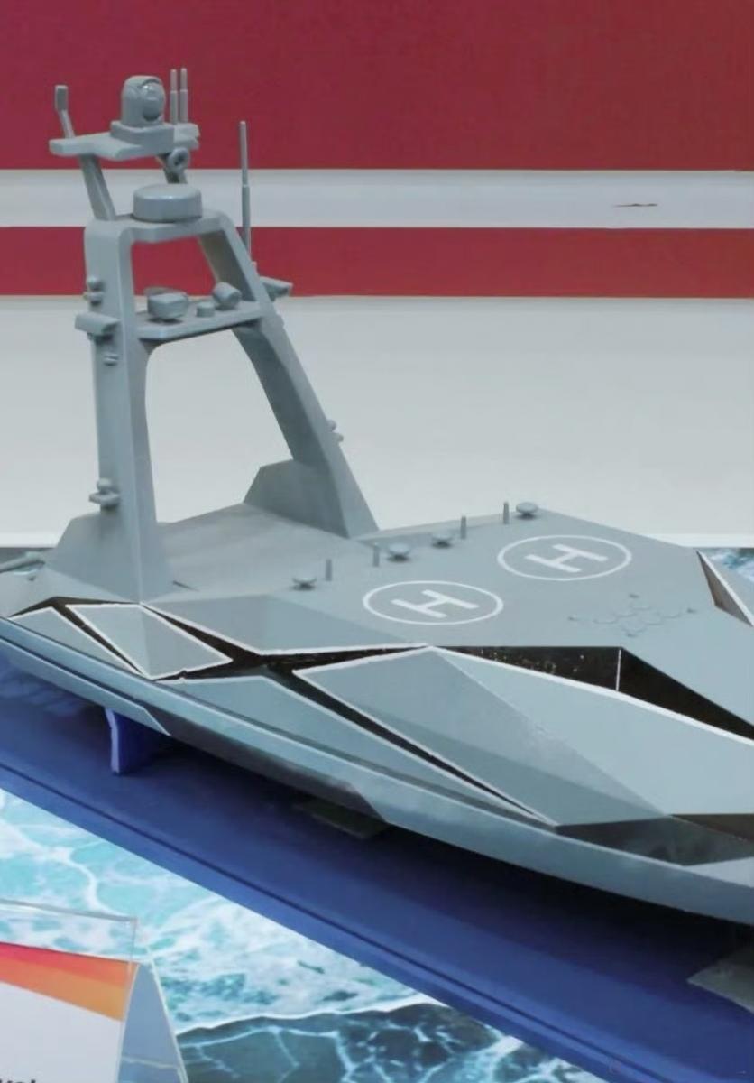 “锐鲨10”的UB1小型无人作战艇,这是出口展示型号。别看只有10吨的小艇,艇艏遥控武器站(12.7mm机枪/30mm小口径舰炮);中部6单元垂发(适配巡飞弹/轻型导弹);双无人机起降甲板,构建“侦察-打击”闭环;可选G68导弹、LDSA巡飞弹;自主导航系等等。 主要用途是近岸巡逻、港口防御、海上拦截、反自杀式无人艇、火力支援等作为前置节点,也适合无人蜂群组网,降低有人兵力风险。 这些无人系统前置,有一个低成本、集群化优势,在主战平台外构建一个密集防御网;同时可以对敌方平台构成低成本持续威胁。