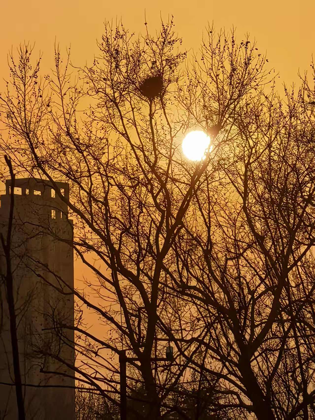 赞夕阳之美 我今天又发夕阳红了,朋友们看昨天夕阳美不美。 夕阳的余晖照亮了整个天空,像似染上了一层金色的光芒,迎映着树上的喜雀窝。如同画家的珍藏画卷,也让文笔者感到心醉神迷。 我说的对不对呢?请朋友评论区一下吧!