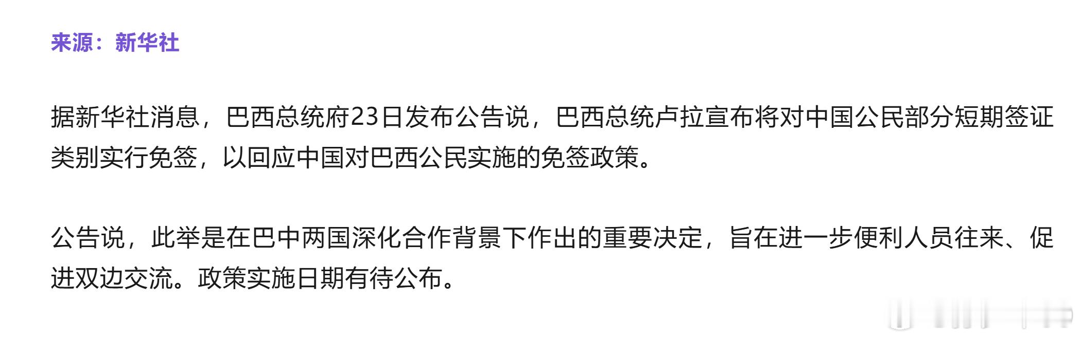 就在昨天,巴西对华宣布了巴西总统府于当地时间1月23号宣布,对中方进入巴西实