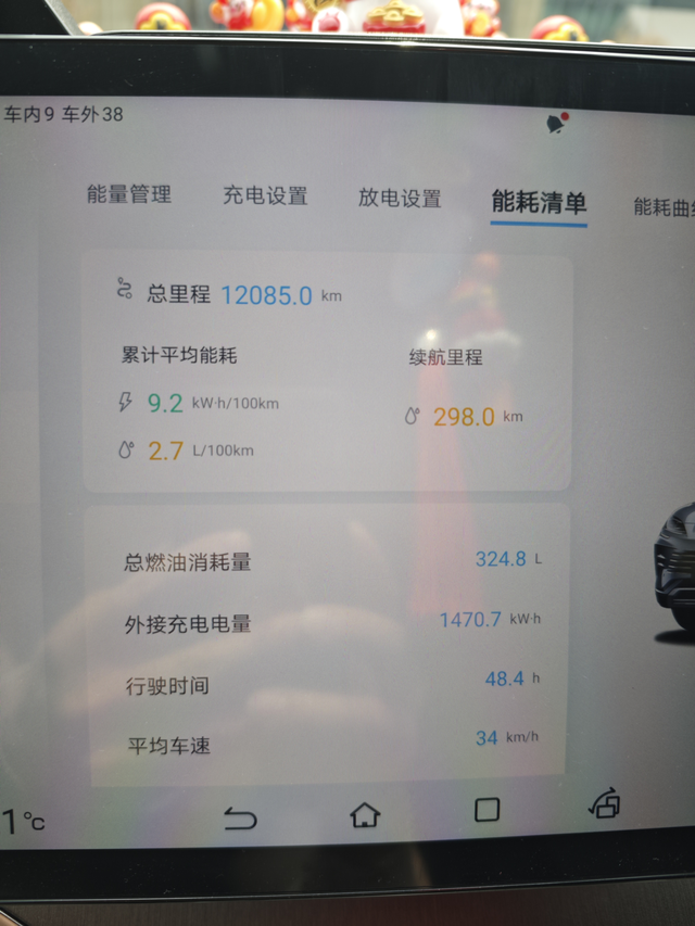 用车8个月的能耗 马上要做第2次保养了。平时上下班用电为主,只有跑长途才会用一下油。用电不花钱,都是在公司充电。用油的话,跑高速油耗跟油车差不多,因为我是能跑130,140绝不跑100那种,能快跑绝不慢跑