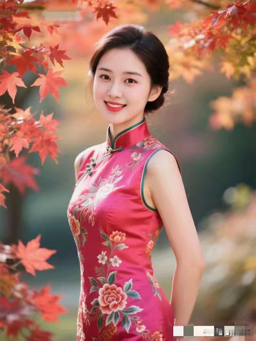 旗袍文化, 底蕴深厚。 中西融合,推陈出新。 贴身裁剪,花样翻新。 身姿妙慢,独具匠心。 真丝绸缎,天然材质。 光泽柔和 ,触感细腻。 旗袍雅致衬娇容, 婀娜多姿显风情。