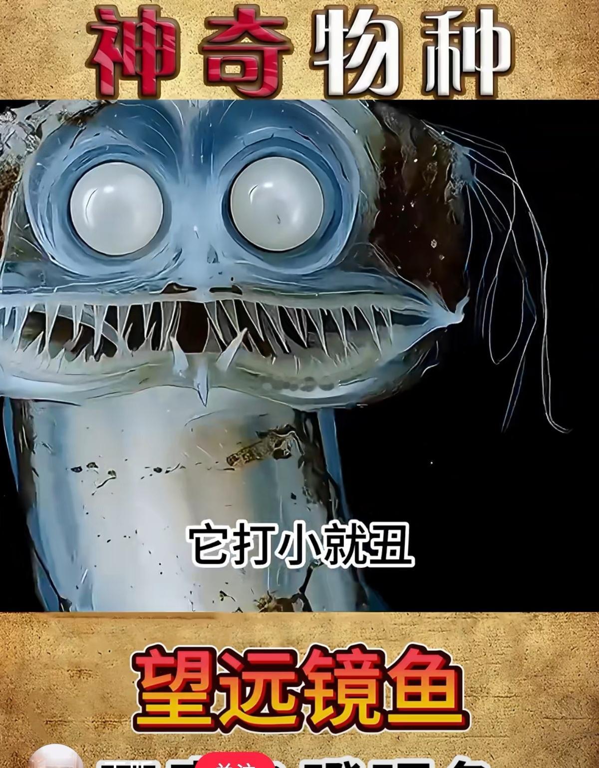 这不是外星生物,也不是AI图,而是真实存在于地球深海之处,叫“望远镜鱼”。图3是“望远镜鱼”妈妈和她的宝宝,神奇之处还在于——母子是共生的,宝宝长大后才与母亲切断连体。