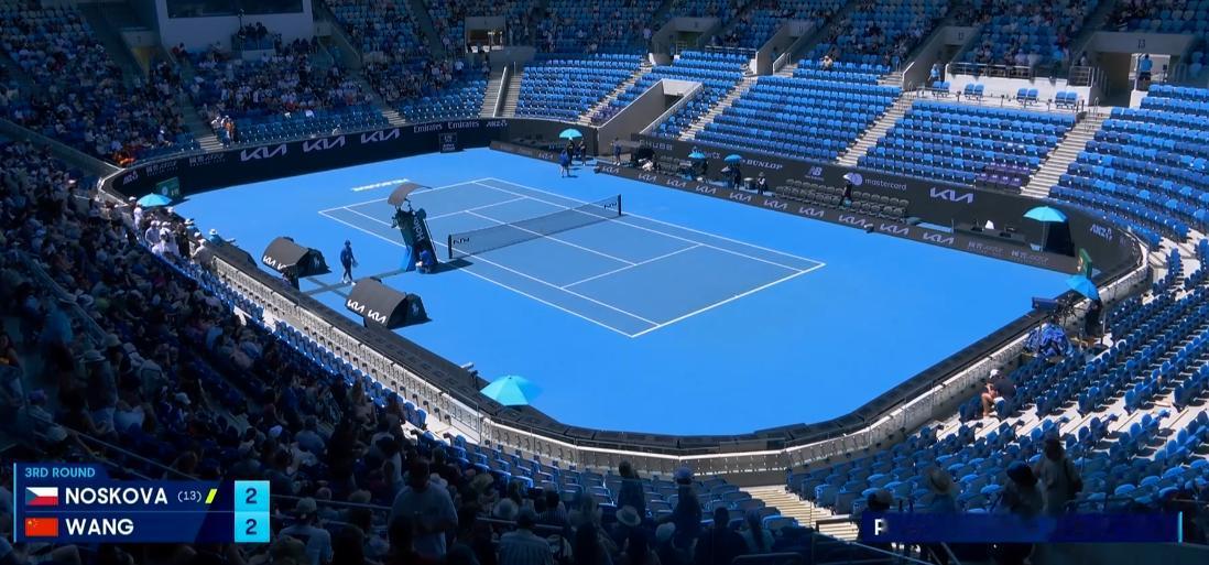 王欣瑜澳网第三轮的比赛,只打10分钟,双方就背包走人了。 刚刚,在澳网的第三轮,中国选手王欣瑜对阵捷克选手洛斯科娃的比赛把我们观众都看懵了。 洛斯科娃先发球,双方都顺利保发。王欣瑜的第二个发球局更是连拿4分,打出了LOVE GAME,双方打成2-2平,显示出了较好的状态。 正当我们观众收拾心情,准备专心欣赏一场精彩的比赛时,王欣瑜与洛斯科娃都背包走人了。 起初我们还以为是有人因伤弃权了,正在琢磨到底发生了什么事时,发现屏幕下边有一行小字:“PLAY SUSPENDED,HEAT RULE”。原来,这是澳网的场地太热了,触发了高温暂停。要等场地降温了之后再重新开赛。 目前,比赛双方选手都进休息室纳凉去了,现场观众也都躲进了阴凉区等待,还不知要等多久。 看网球这么多年,遇到过下雨暂停的,还是第一次遇到高温暂停。看来,进入21世纪了,网球还是一个靠天吃饭的项目啊。